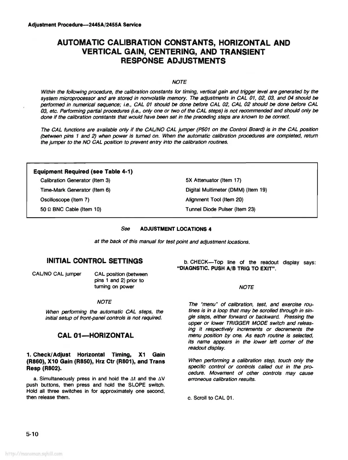 Adjustment Procedure-2445A/2455A Service