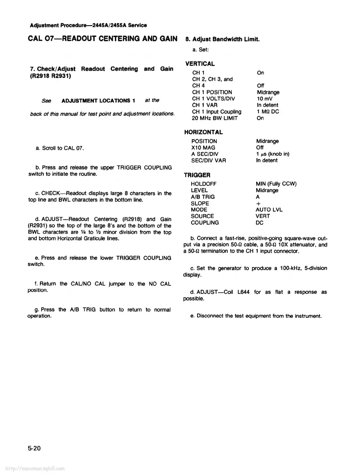 Adjustment Procedure-2445A/2455A Service