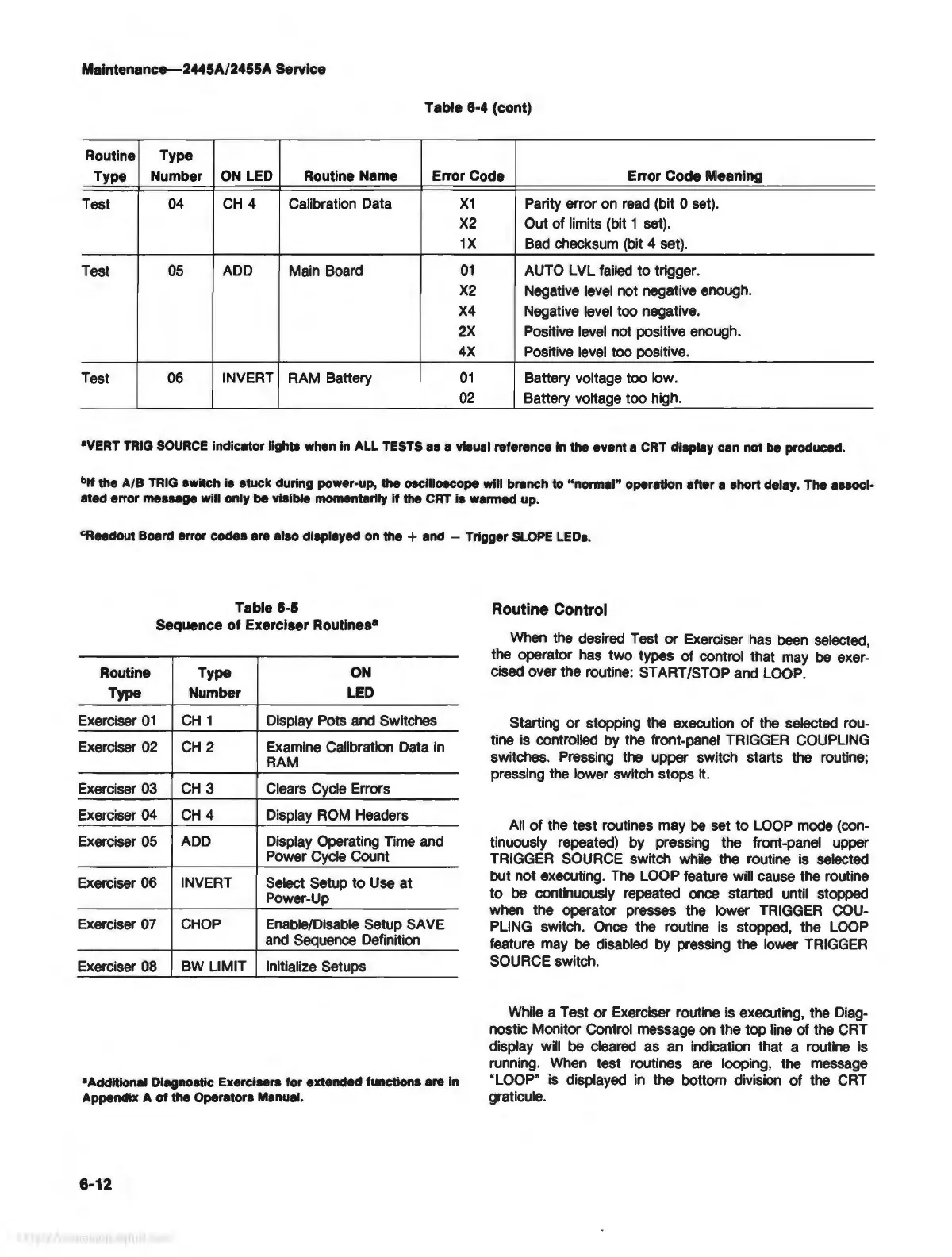 the test routines may
