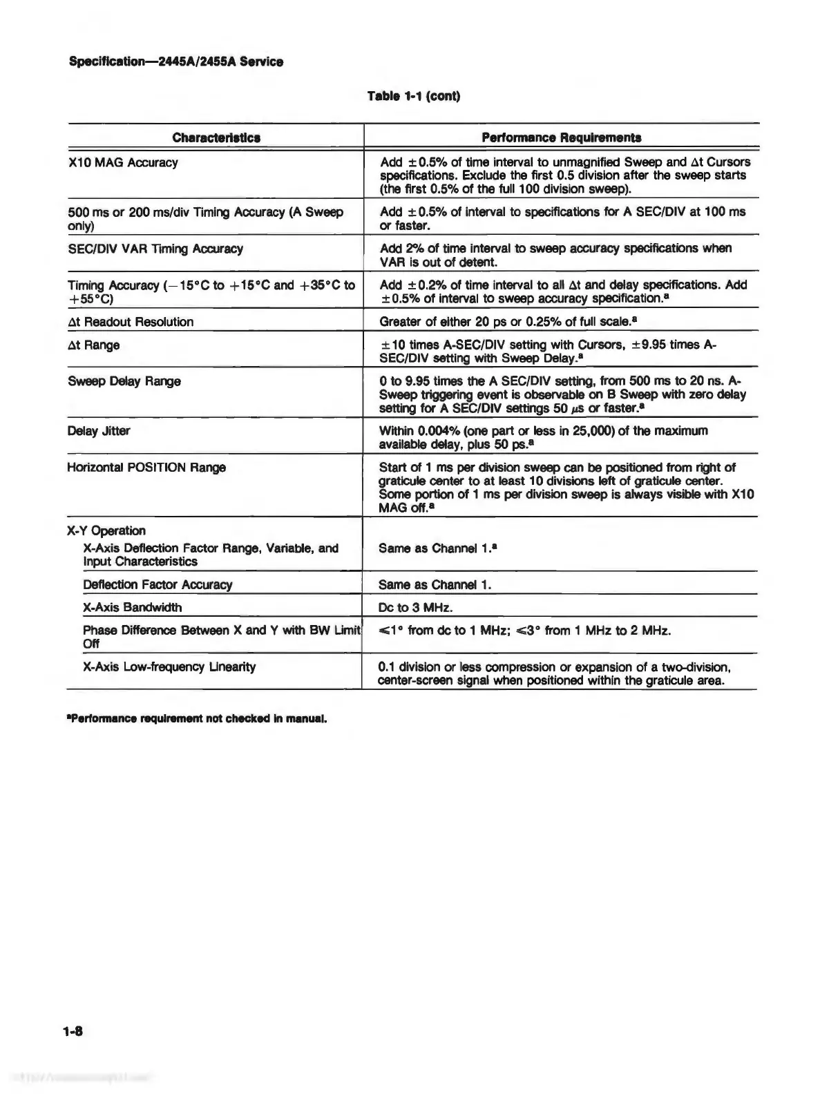 X-Axis Deflection Factor Range, Variable, and Same as Channel