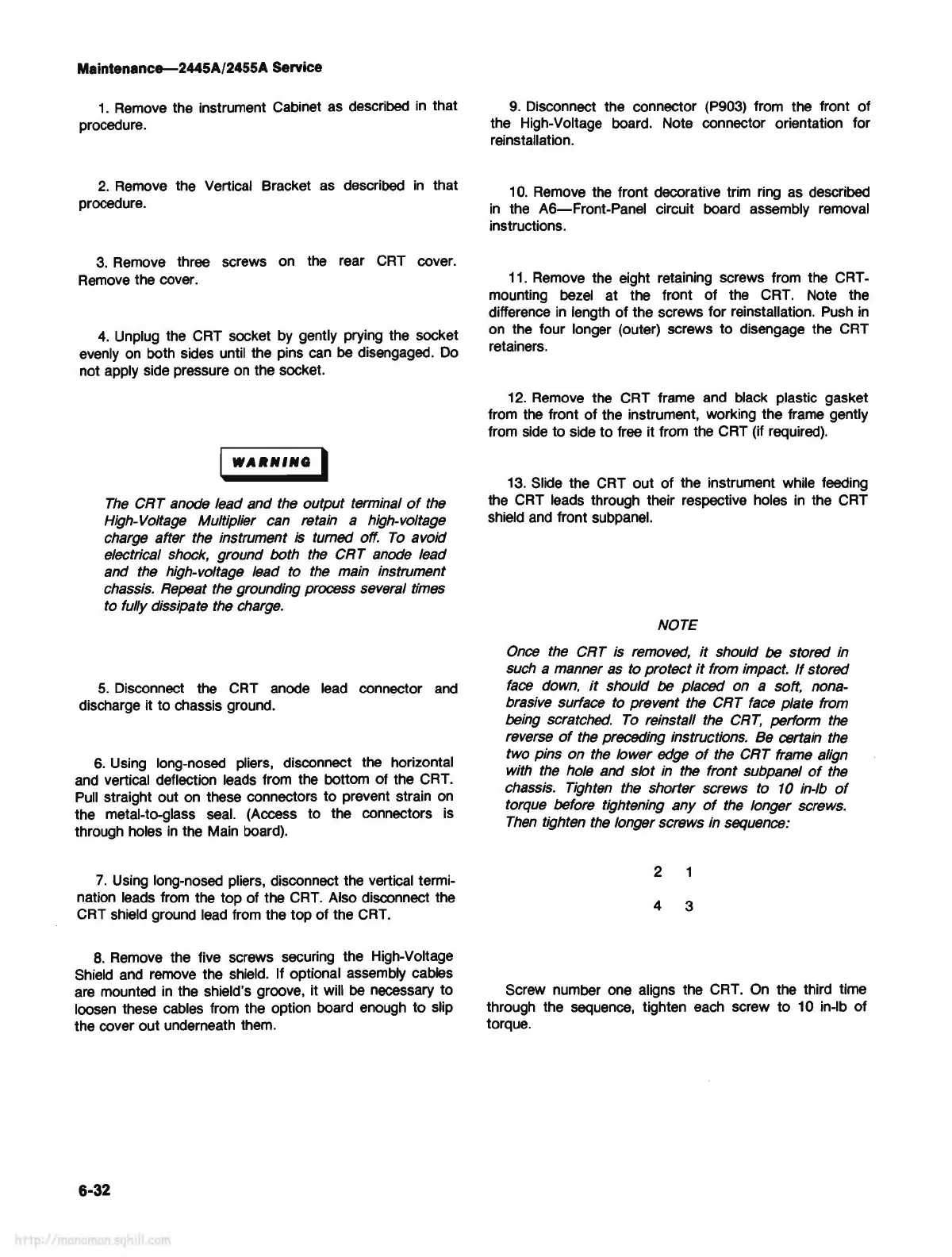 the four longer (outer) screws to disengage the CRT