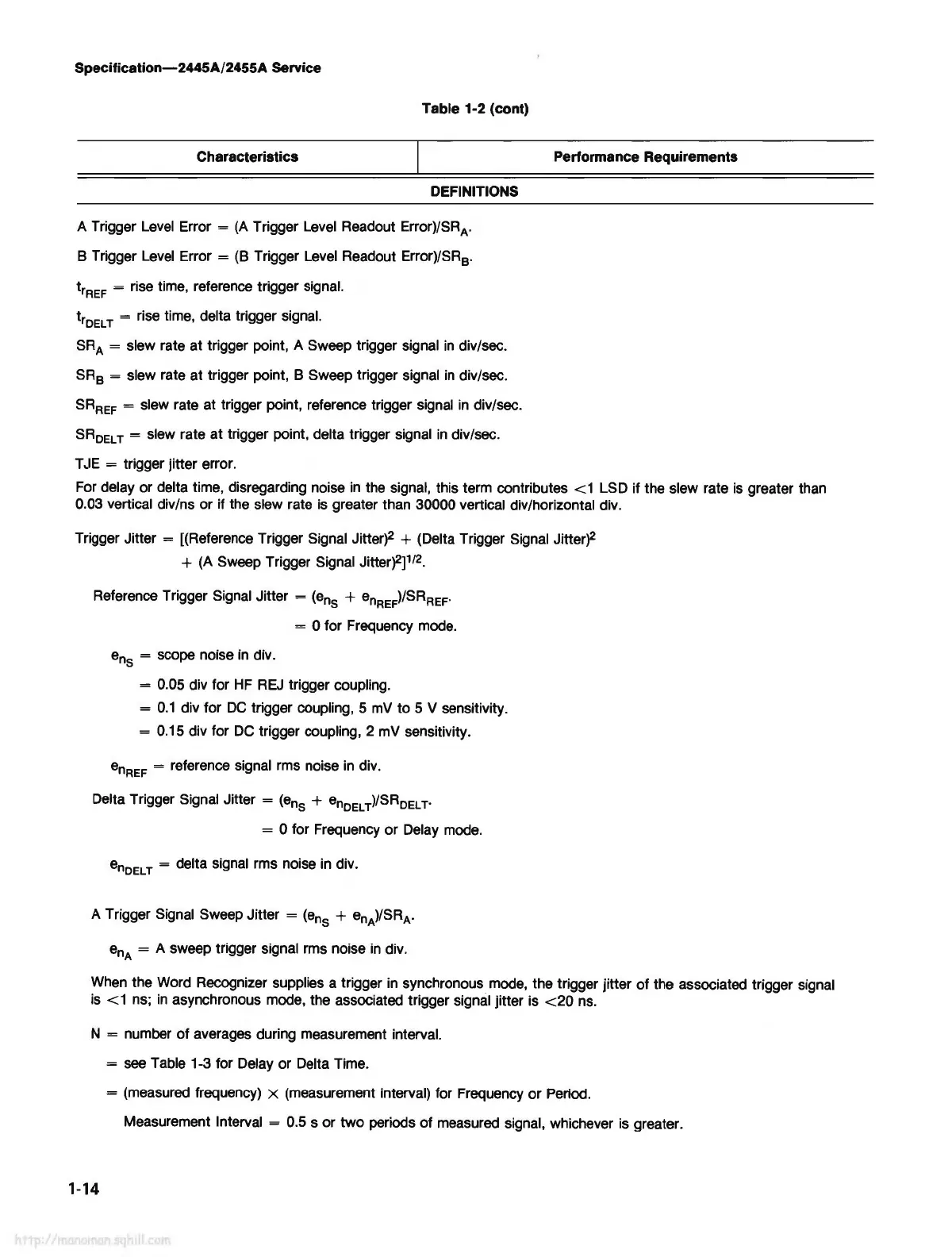 T = slew rate at trigger point, delta trigger signal