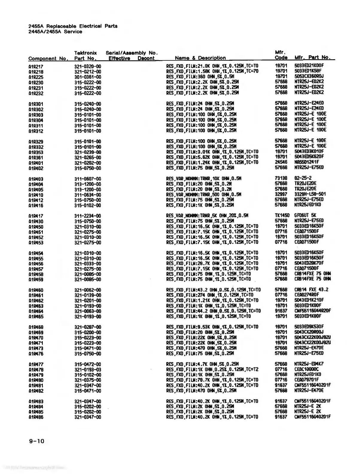 2455A Replaceable Electrical Parts