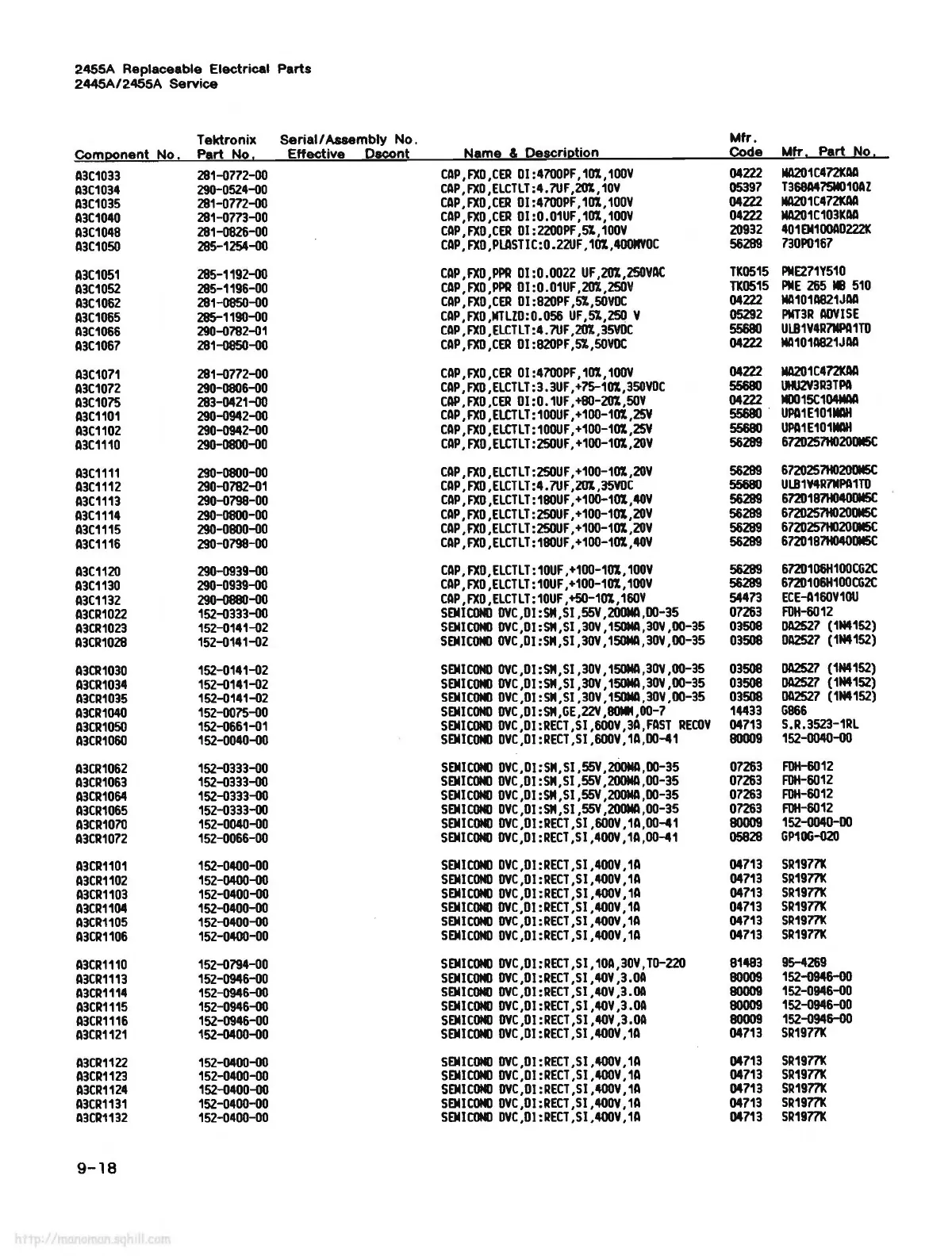 2455A Replaceable Electrical Parts