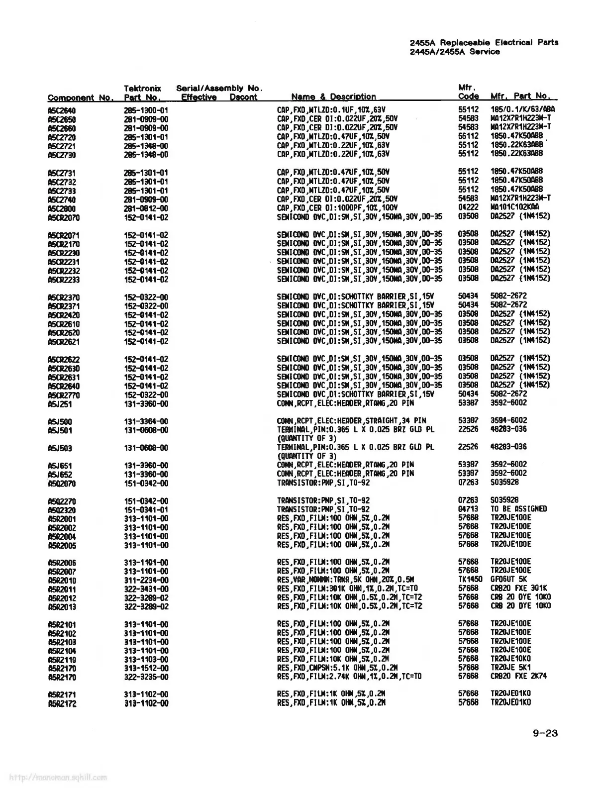 2455A Replaceable Electrical Parts