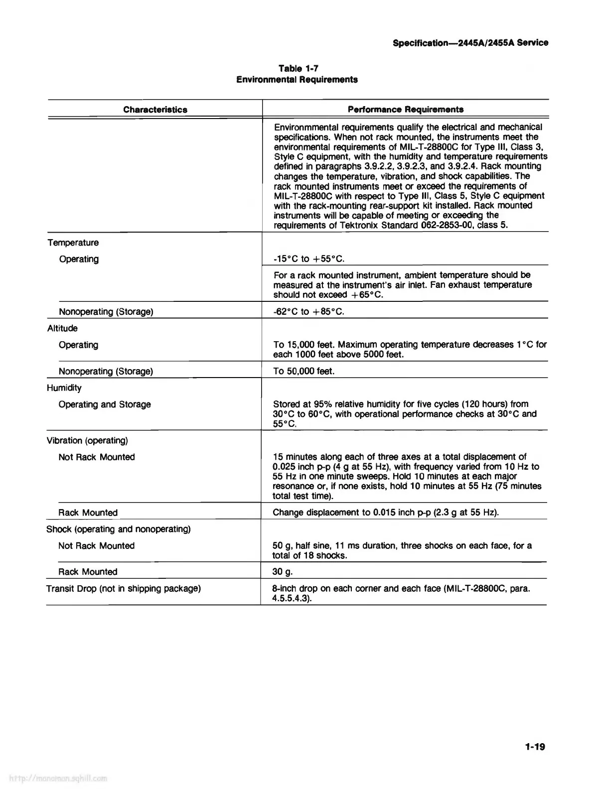 specifications. When not rack mounted, the instruments meet the