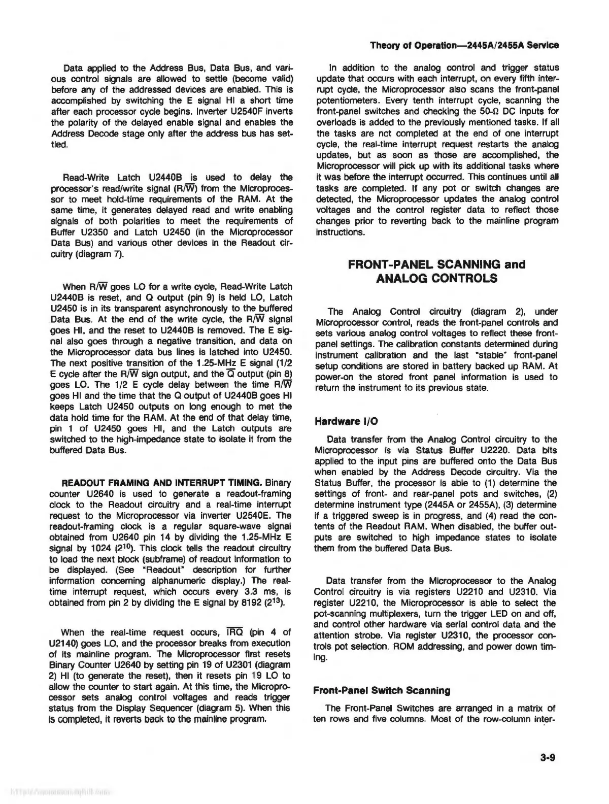 rupt cycle, the Microprocessor also scans the front-panel