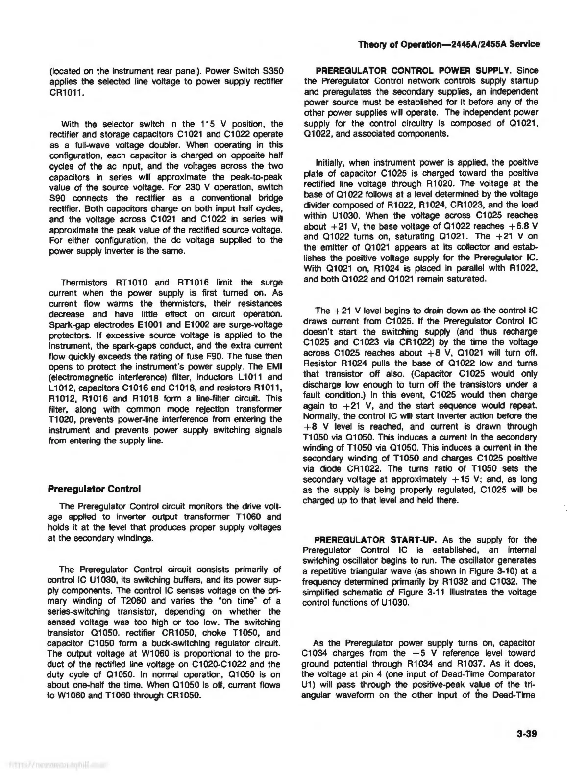 draws current from C1025. If the Preregulator Control