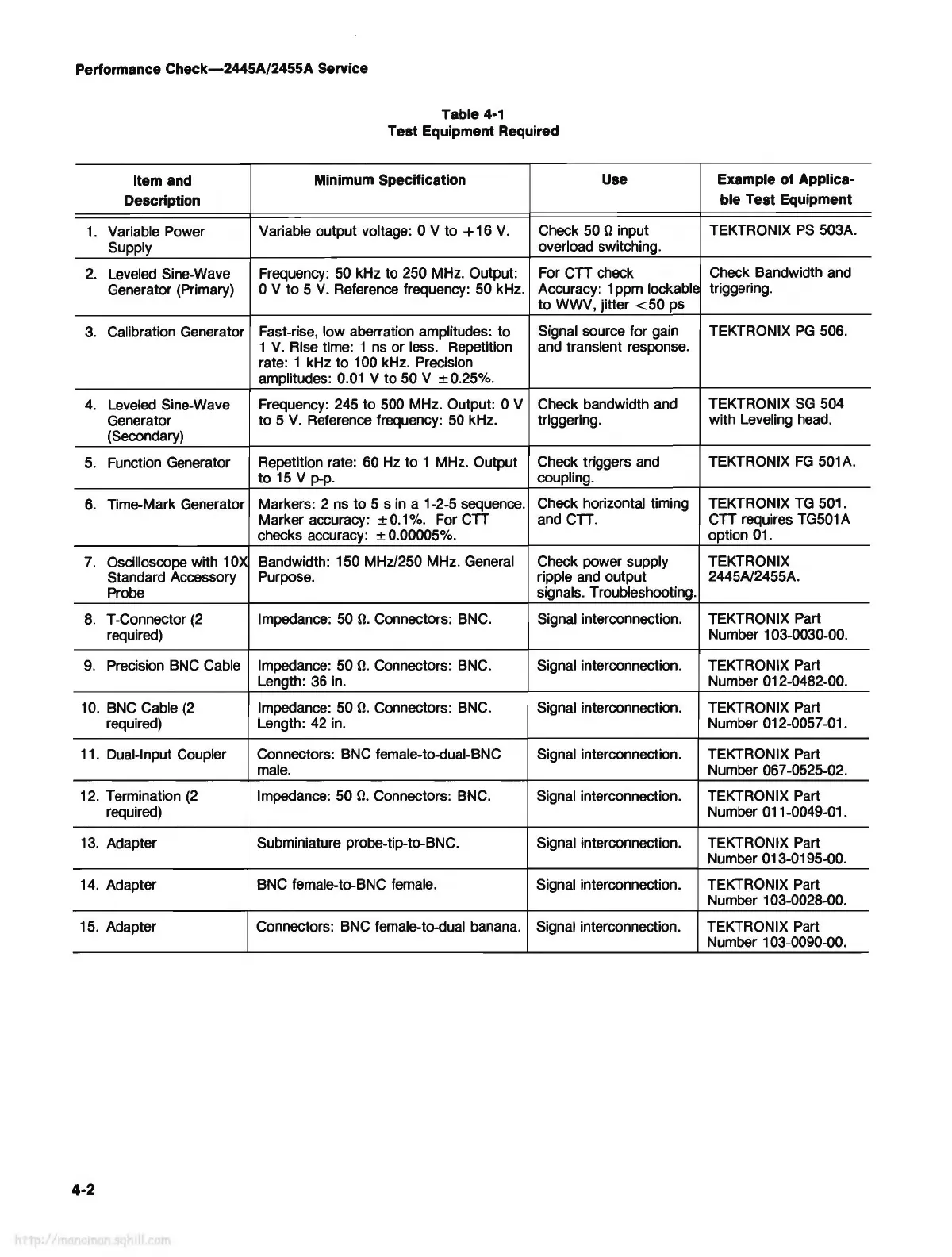 15. Adapter Connectors: BNC female-to-dual banana. Signal interconnection. TEKTRONIX Part