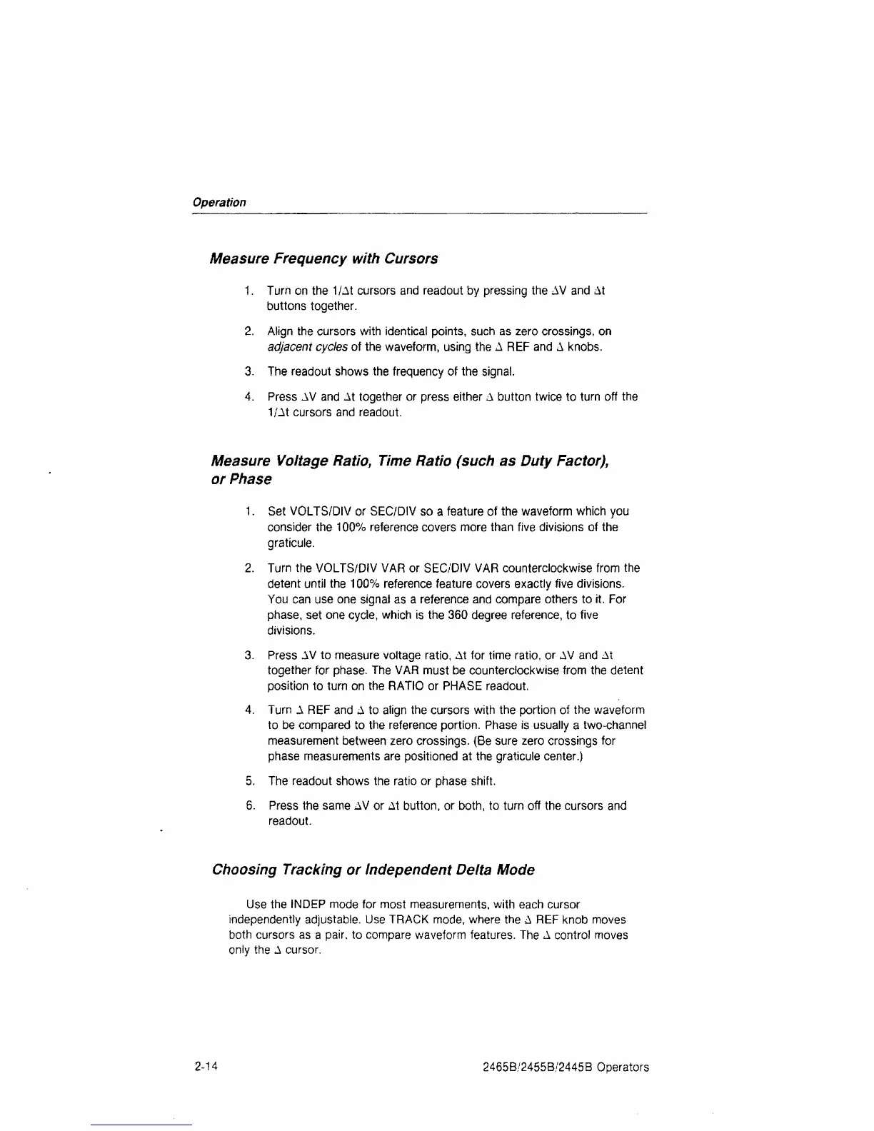 Turn on the 1/At cursors and readout by pressing the AV and At