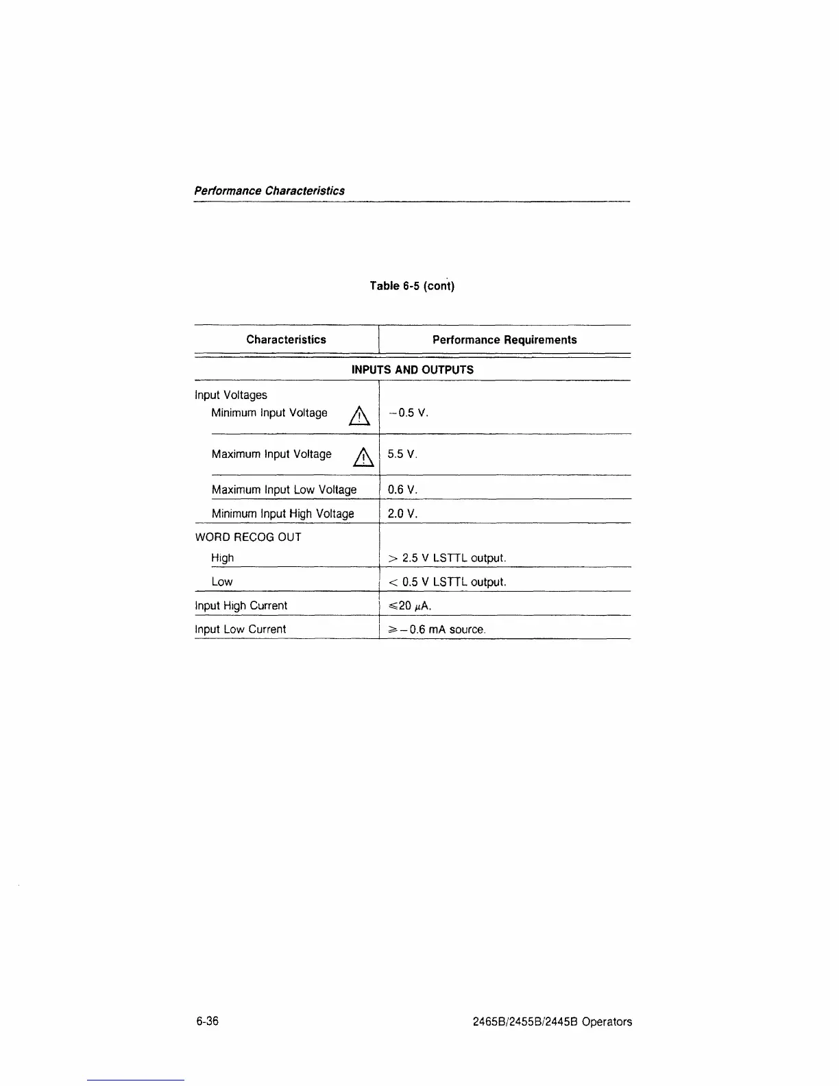 Characteristics Performance Requirements