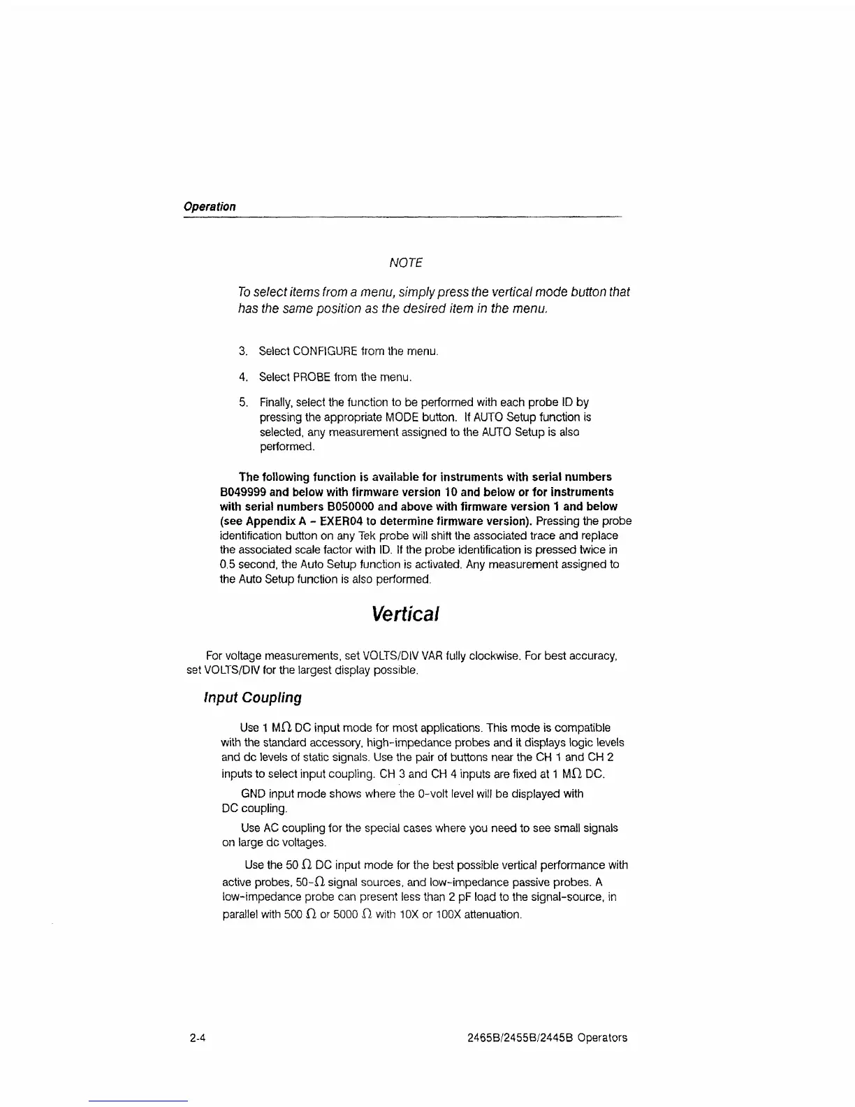 Use the 50 Q DC input mode for the best possible vertical performance with