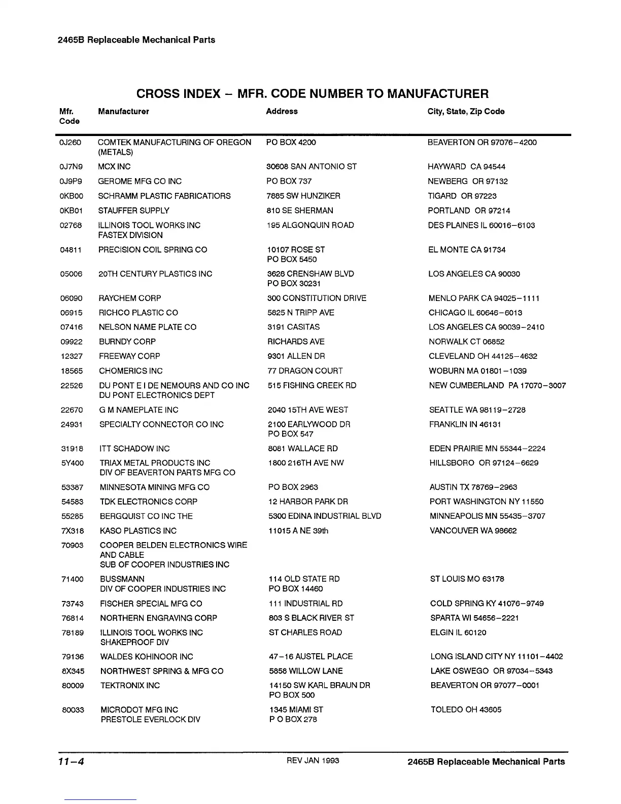 CROSS INDEX - MFR. CODE NUMBER TO MANUFACTURER