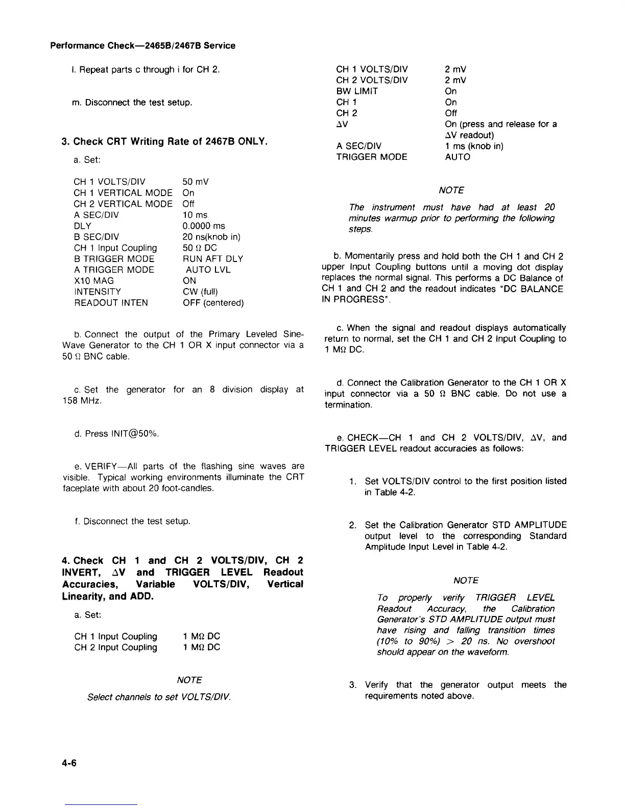 Performance Check—2465B/2467B Service