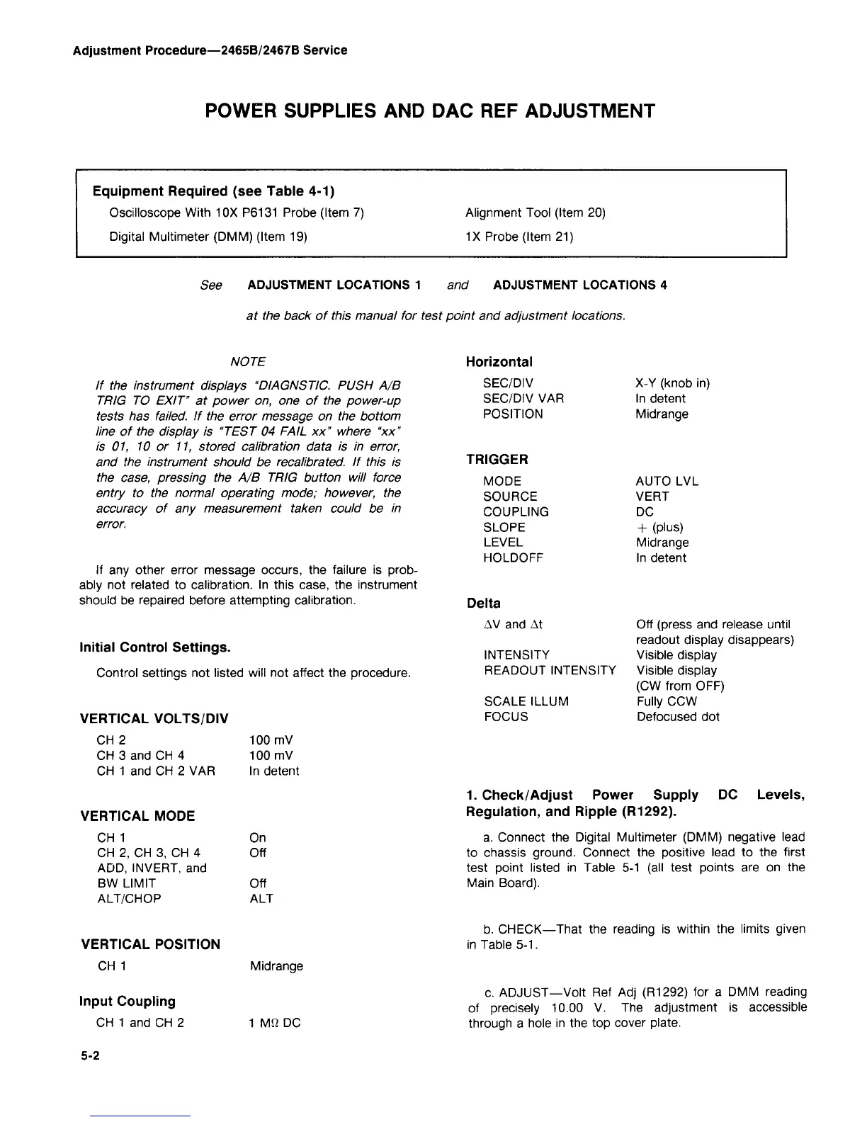 POWER SUPPLIES AND DAC REF ADJUSTMENT