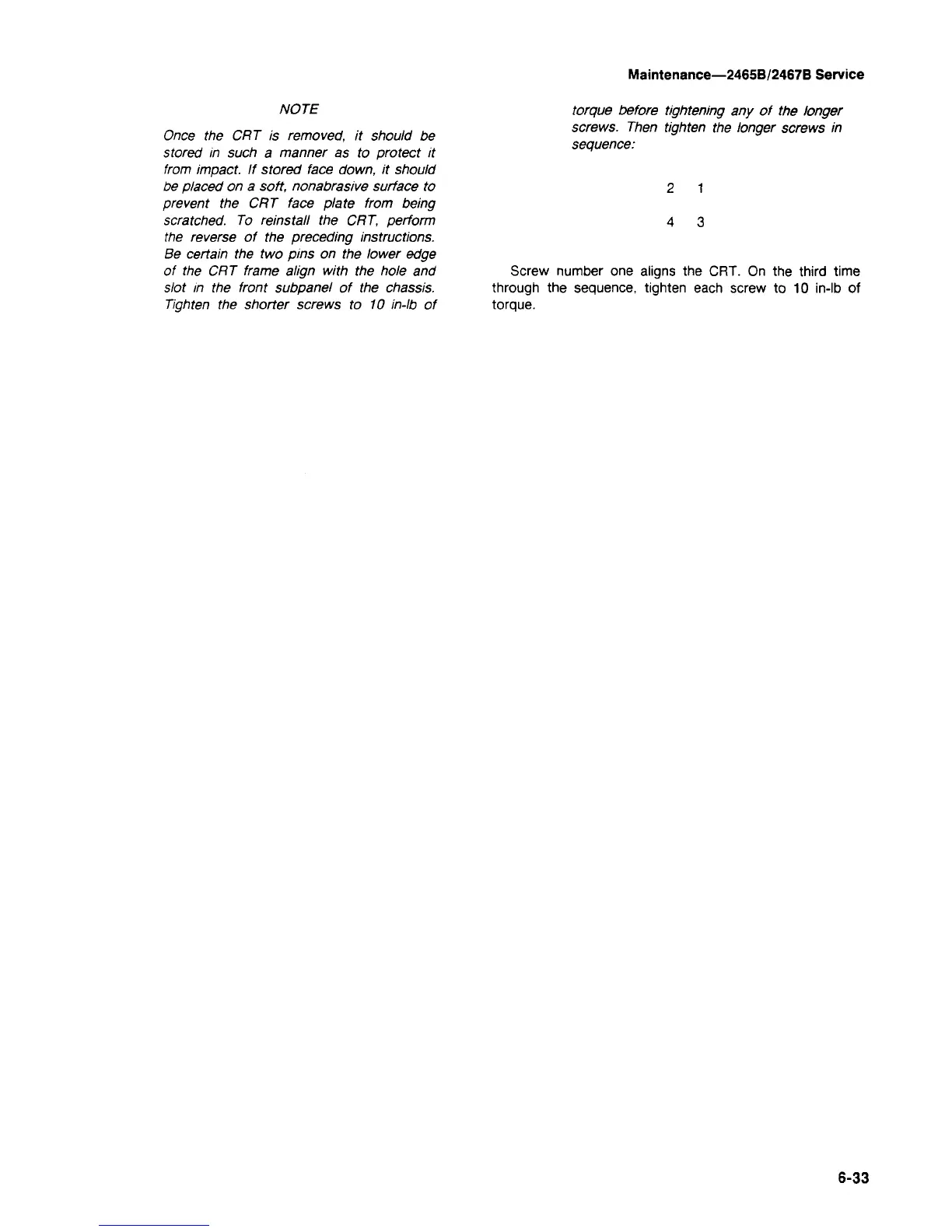 Maintenance—2465B/2467B Service