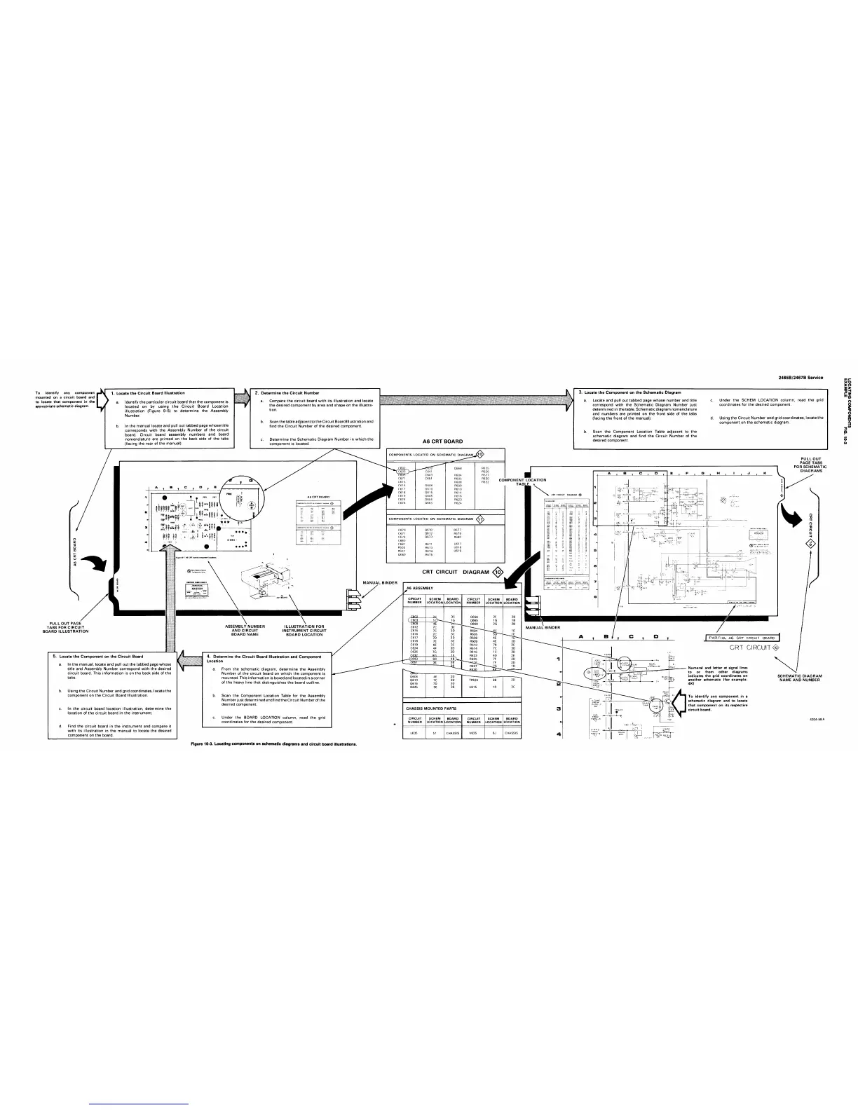 Figure 10-3. Locating components on schematic diagrams and circuit board illustrations.