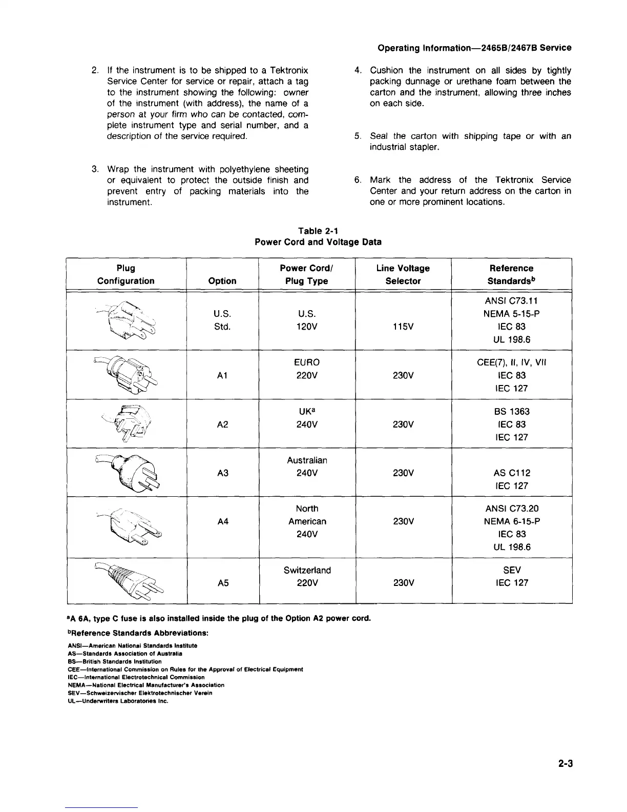 "A 6A, type C fuse is also installed inside the plug of the Option A2 power cord.