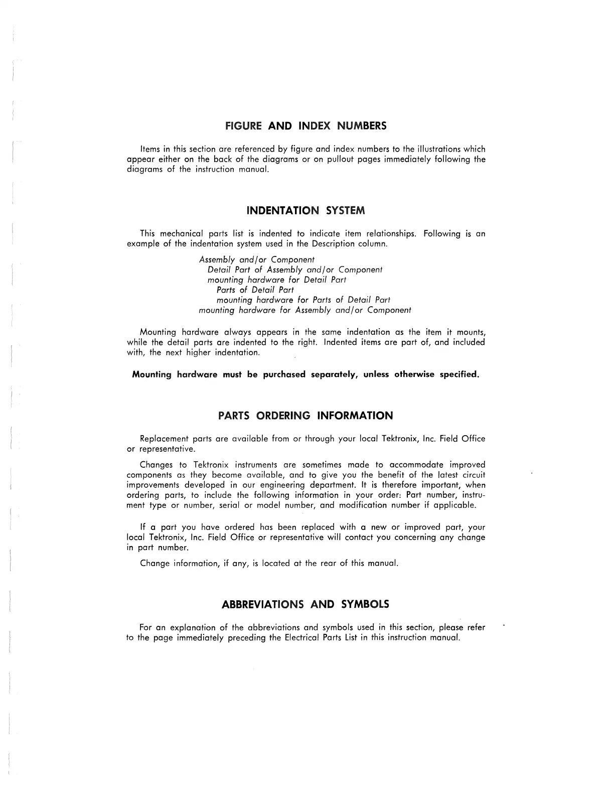 Replacement parts are available from or through your local Tektronix, Inc. Field Office