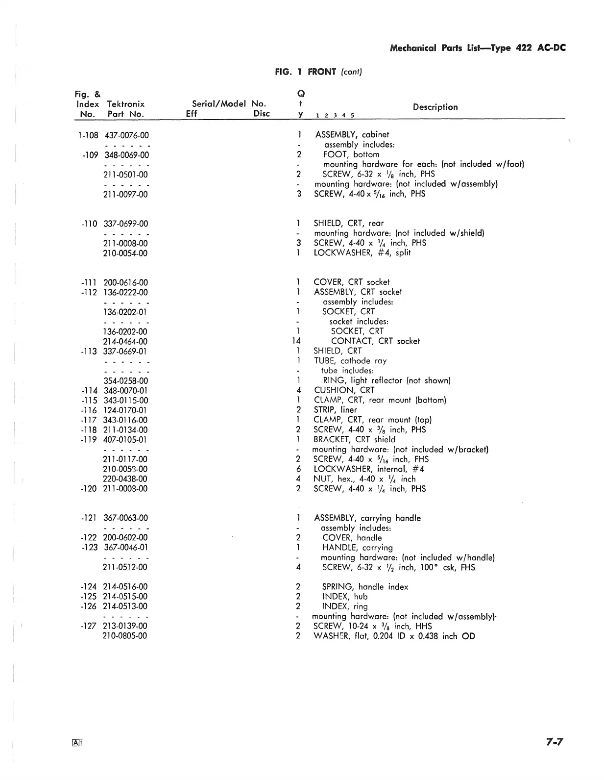 Mechanical Parts List— Type 422 AC-DC