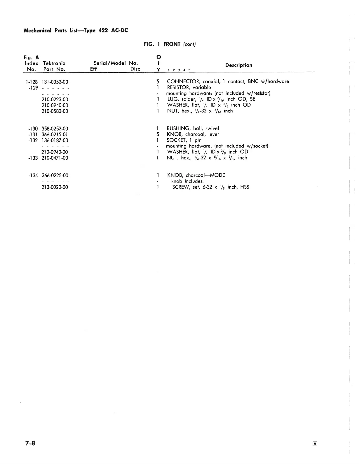 Mechanical Parts List— Type 422 AC-DC