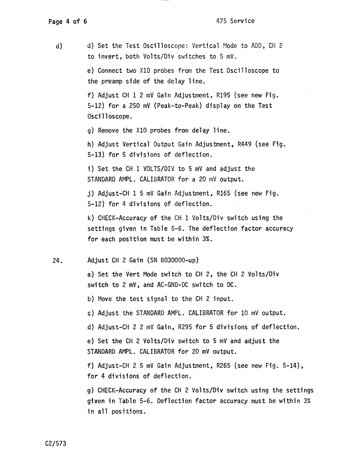 f) Adjust-CH 2 5 mV Gain Adjustment, R265 (see new Fig. 5-14),