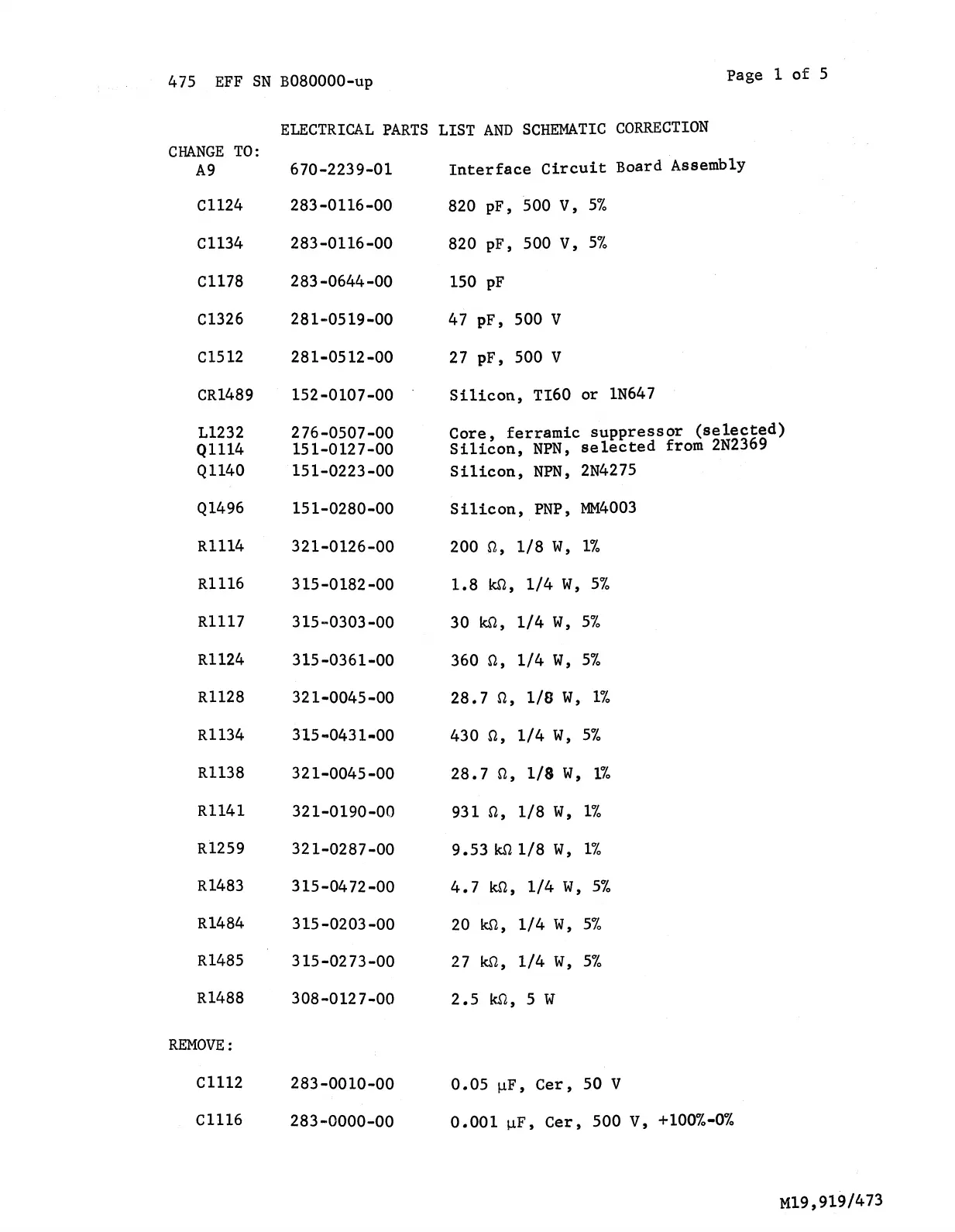 ELECTRICAL PARTS LIST AND SCHEMATIC CORRECTION