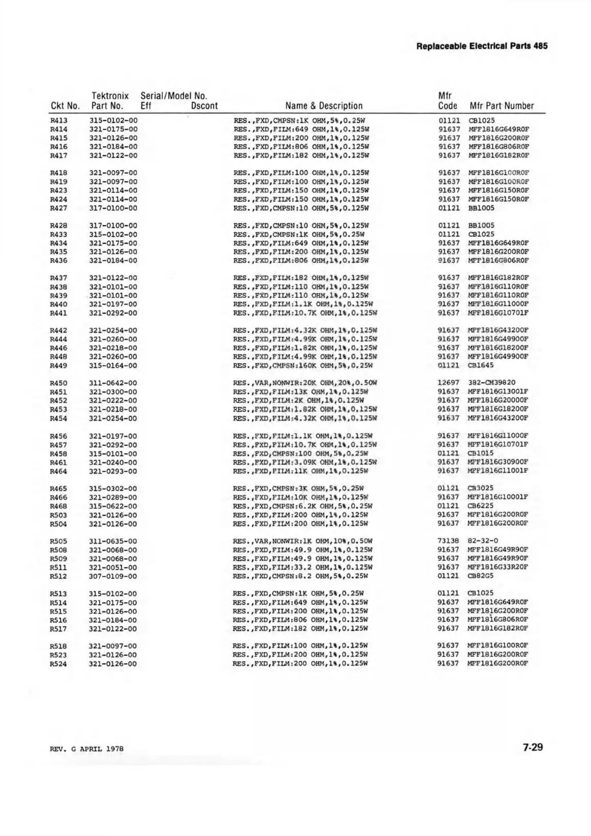 R448 321-0260-00 RES.,FXD,FILM:4.99K OHM,1%,0.125W