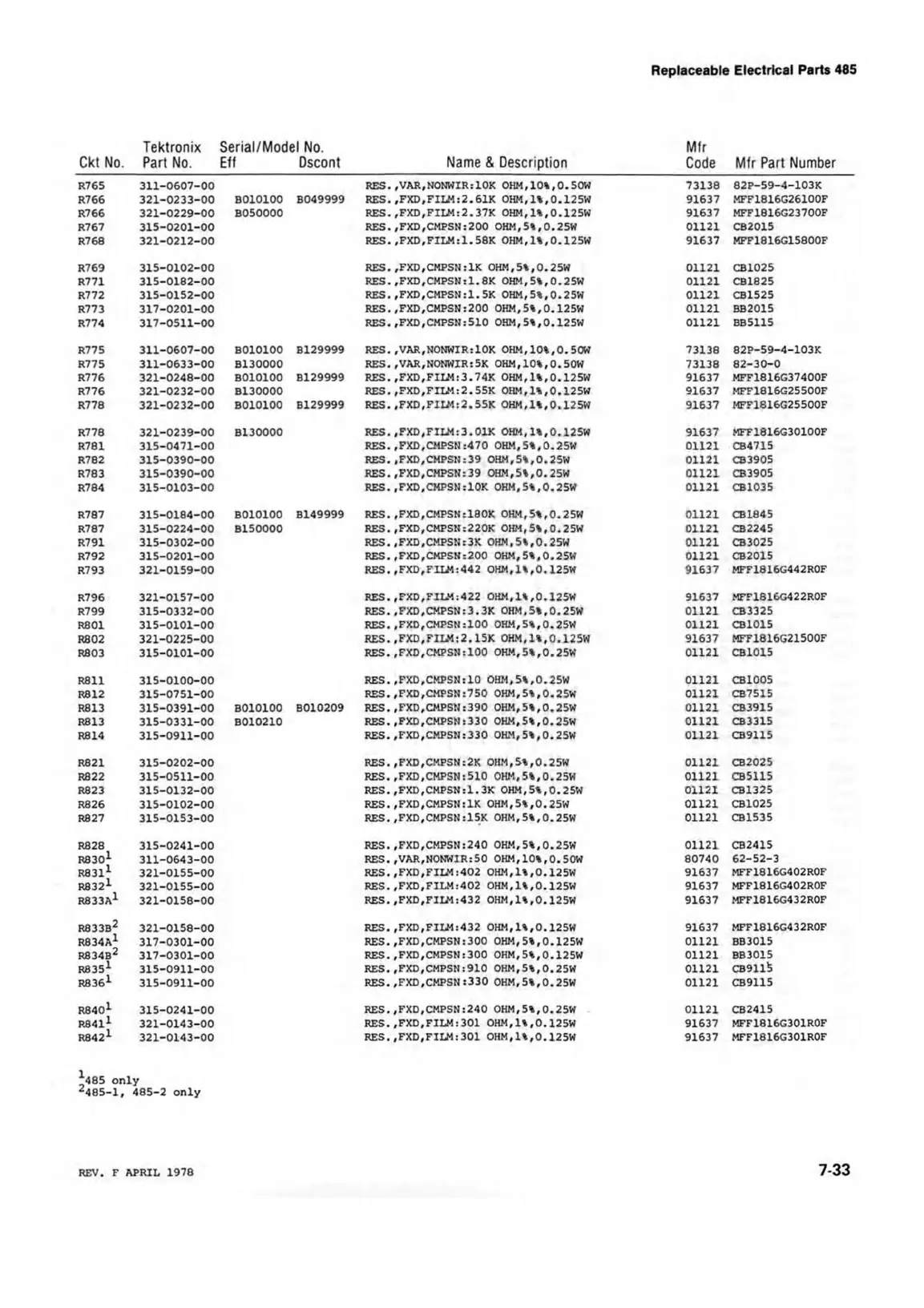B010100 B049999 RES.,FXD,FILM:2.61K OHM,1%,0.125W 91637
