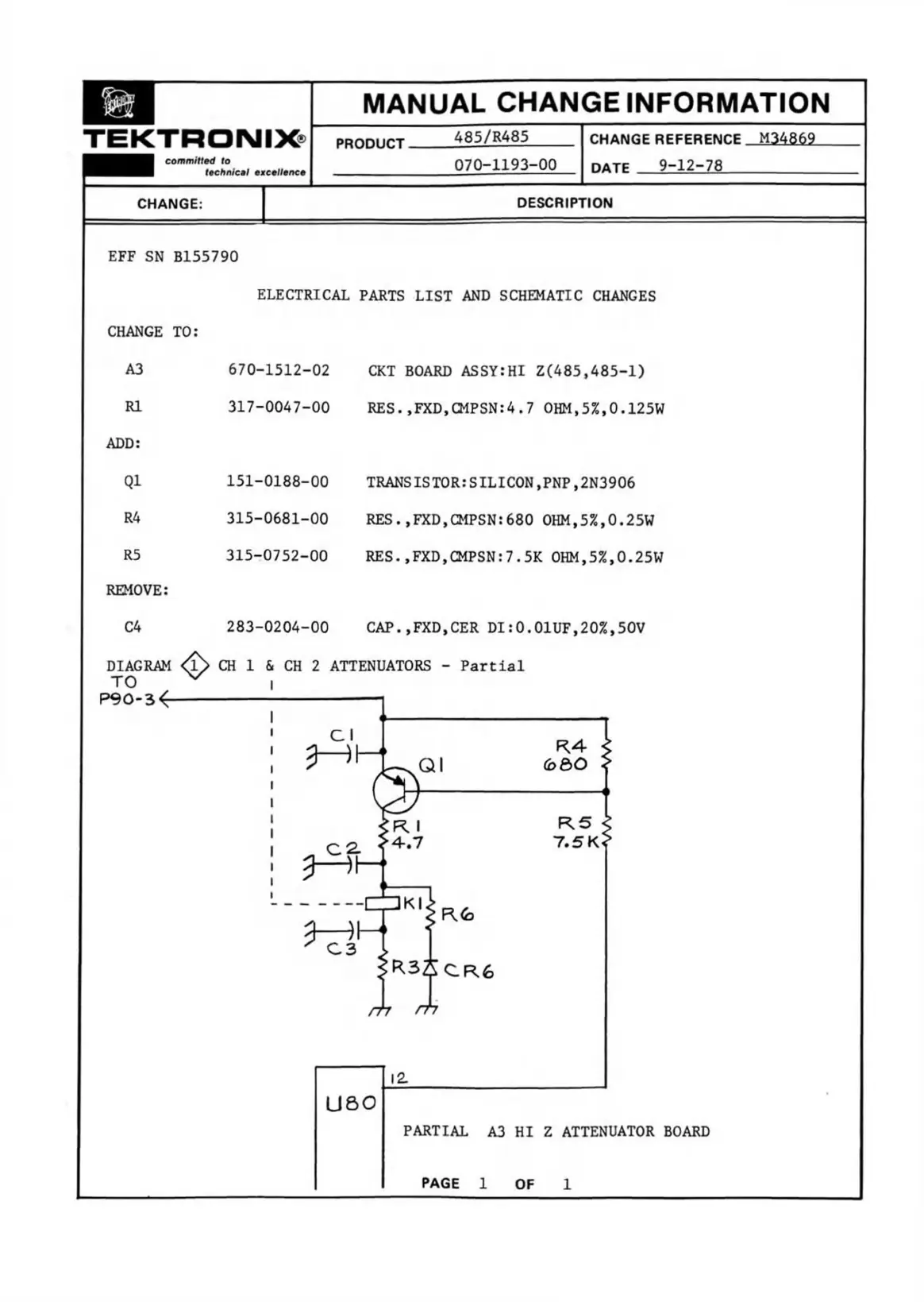ELECTRICAL PARTS LIST AND SCHEMATIC CHANGES