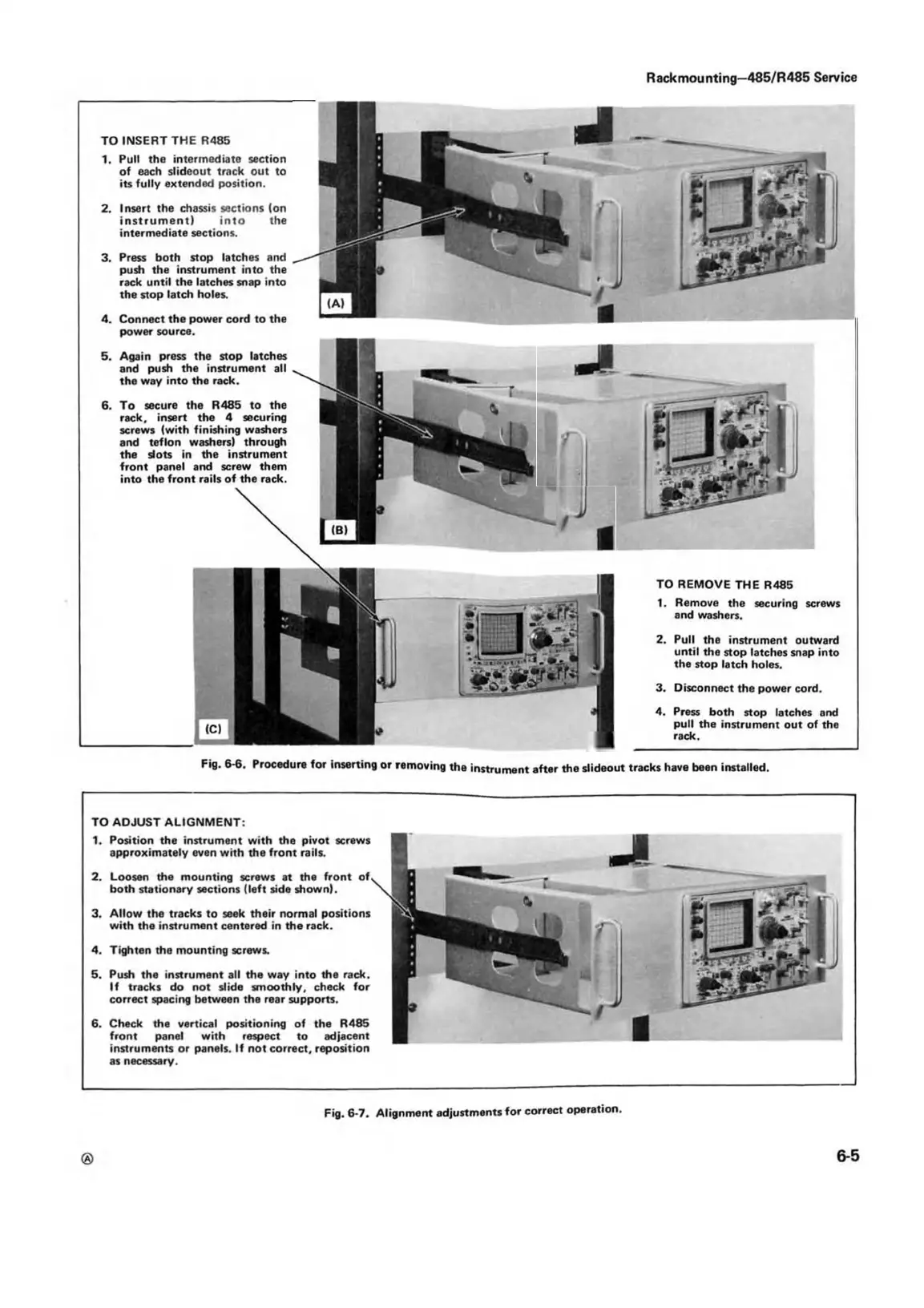 Fig. 6-6. Procedure for inserting or removing the instrument after the slideout tracks have been installed.