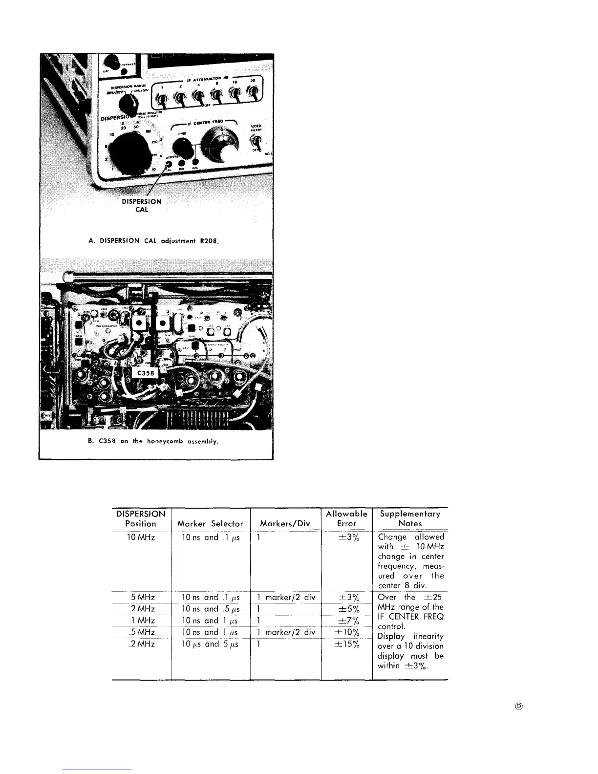 d. Adjust the DISPERSION CAL R208 (Fig. 6-22) for 1