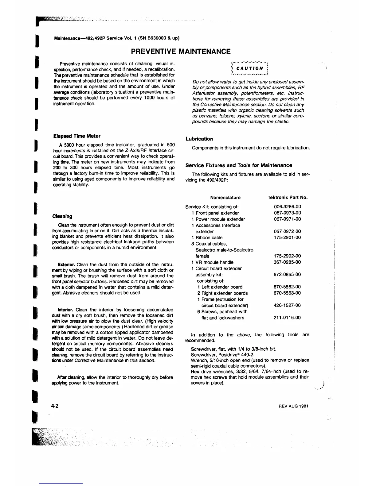 Maintenance—492/492P Service Vol. 1 (SN B030000 & up)