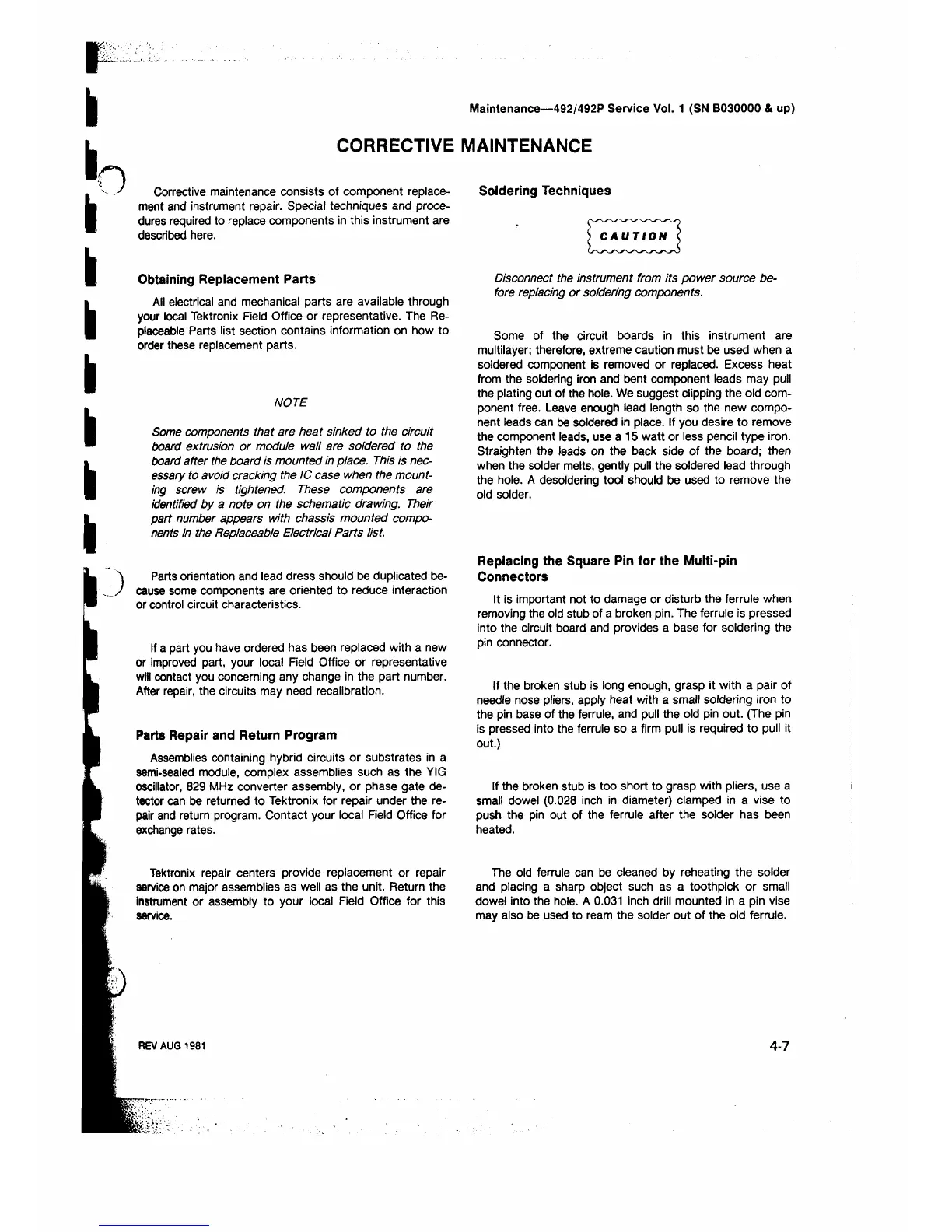 Maintenance—492/492P Service Vol. 1 (SN B030000 & up)