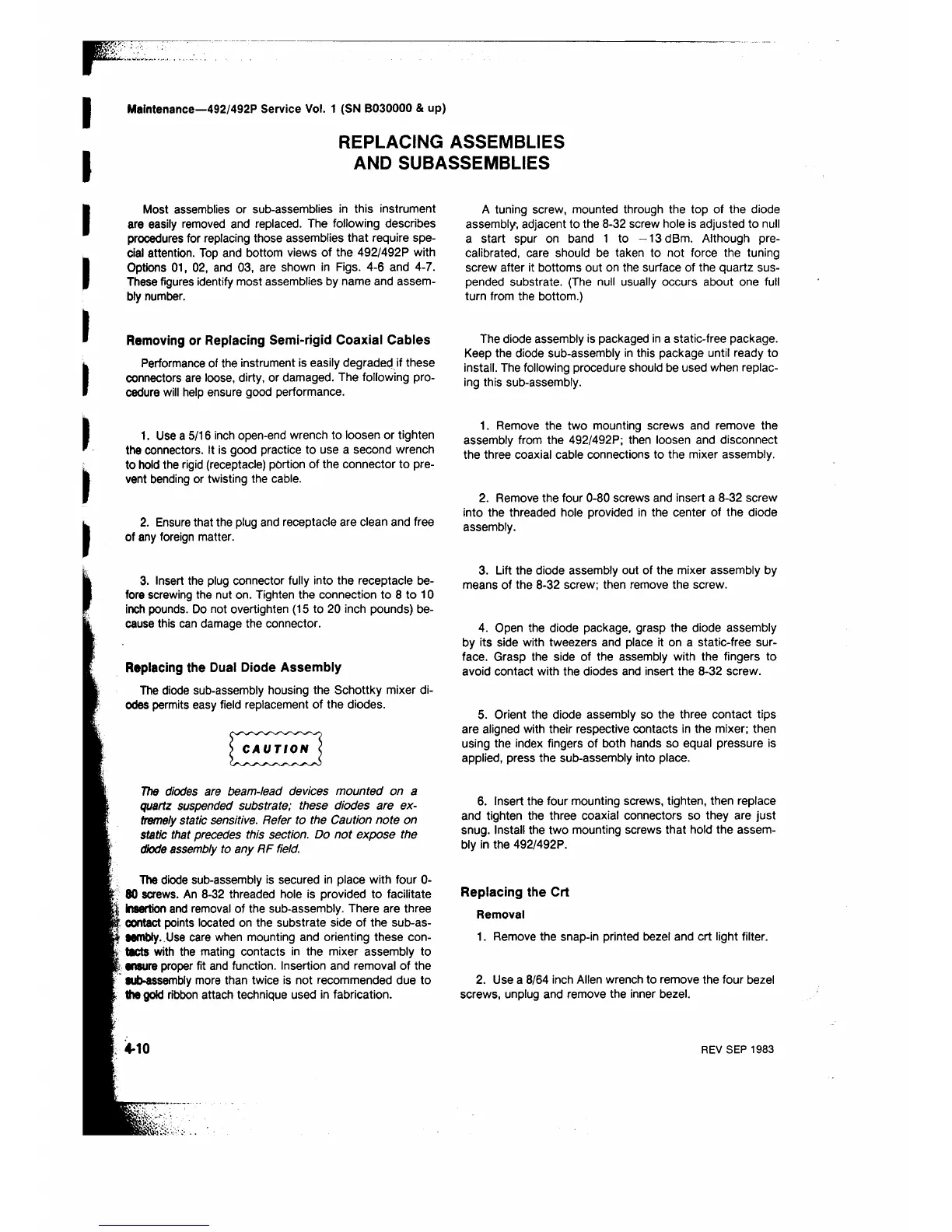 Maintenance—492/492P Service Vol. 1 (SN B030000 & up)