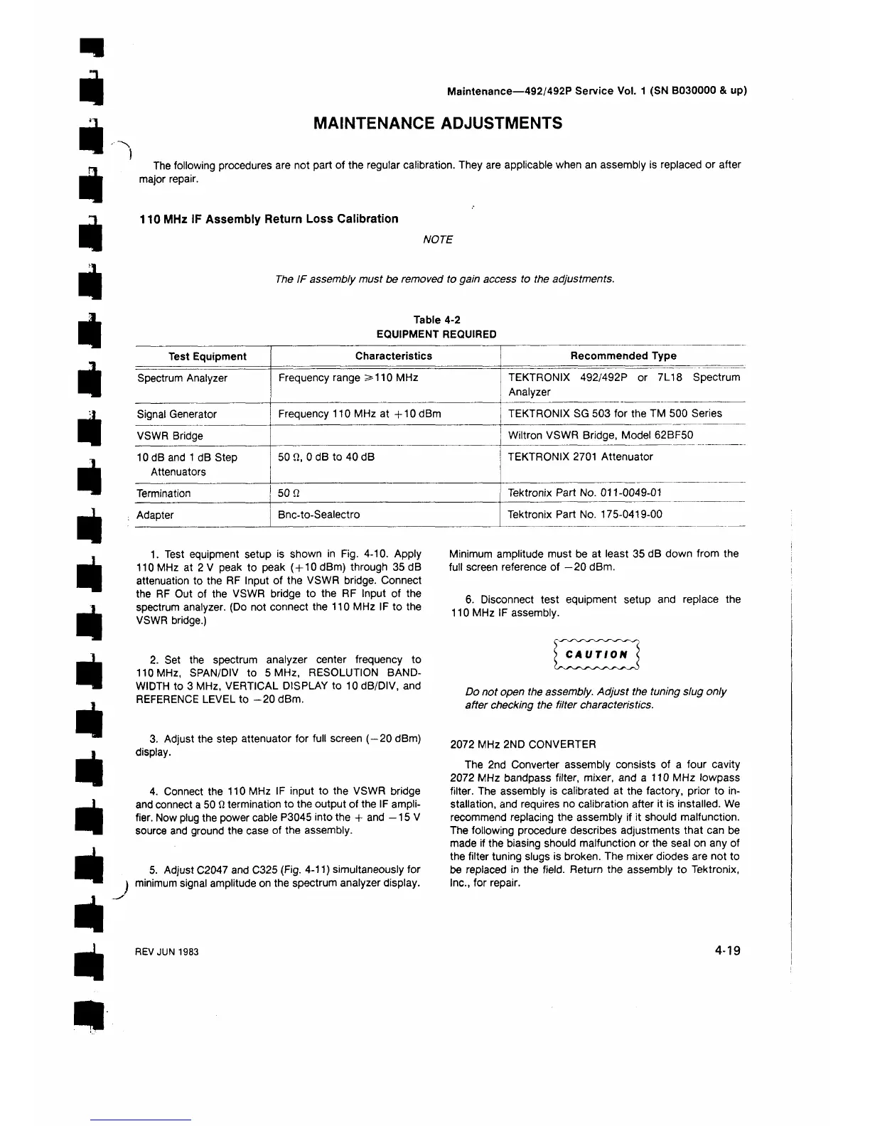 Maintenance—492/492P Service Vol. 1 (SN B030000 & up)