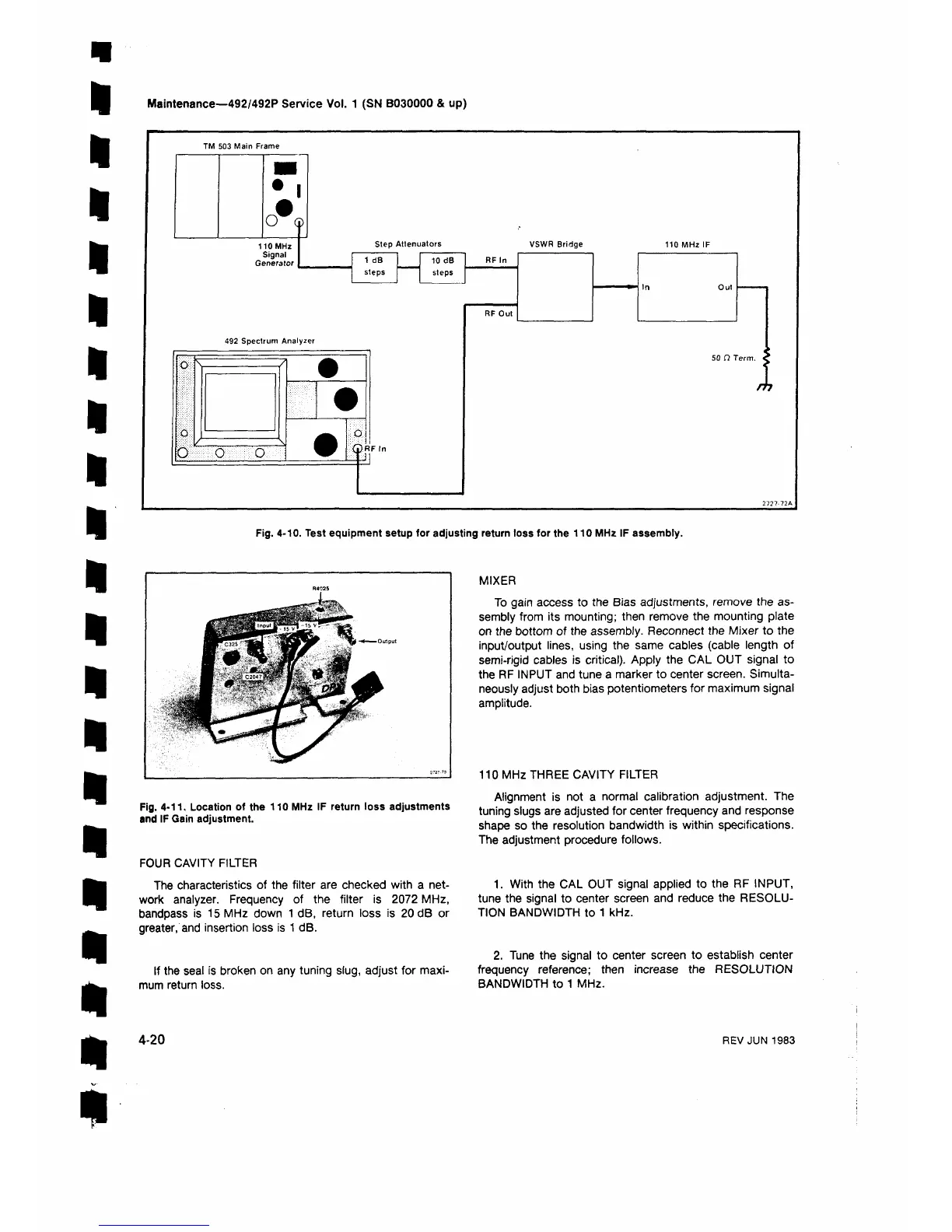 Fig. 4-10. Test equipment setup for adjusting return loss for the 110 MHz IF assembly.