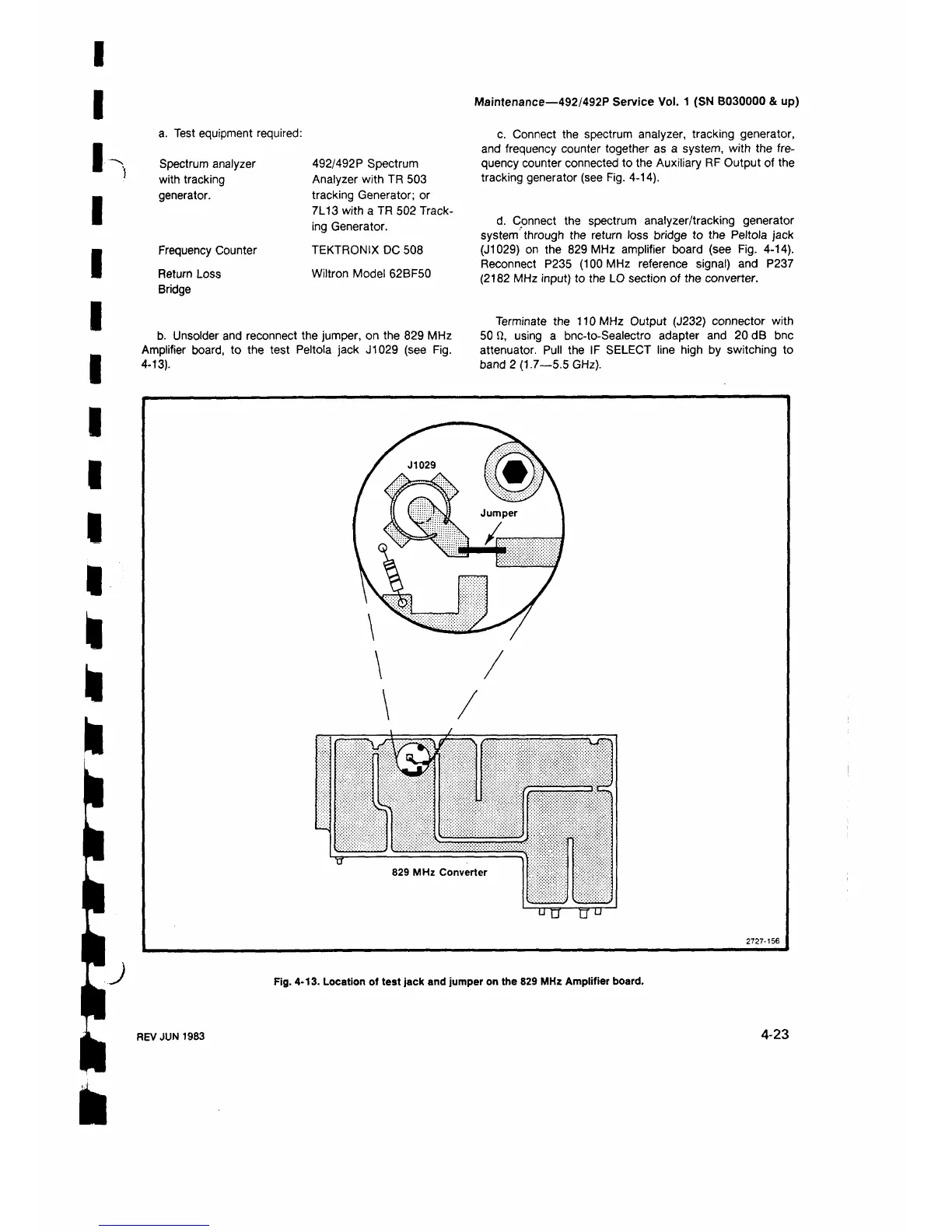 (J1029) on the 829 MHz amplifier board (see Fig. 4-14).