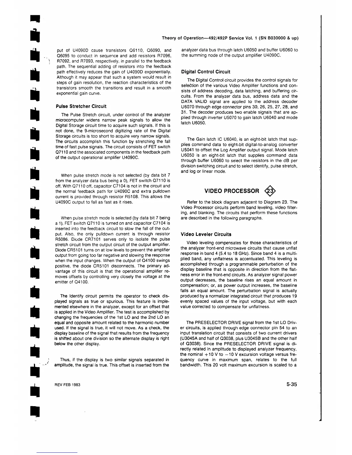 Theory of Operation—492/492P Service Vol. 1 (SN B030000 & up)