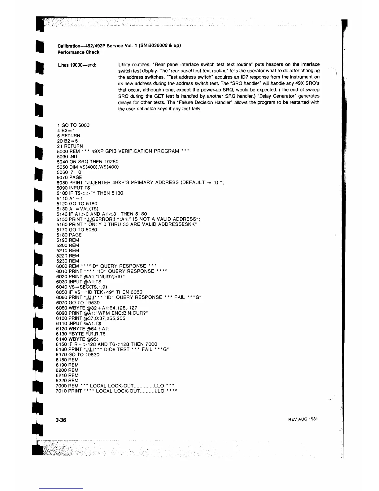 5000 REM * *' 49XP GPIB VERIFICATION PROGRAM * * *