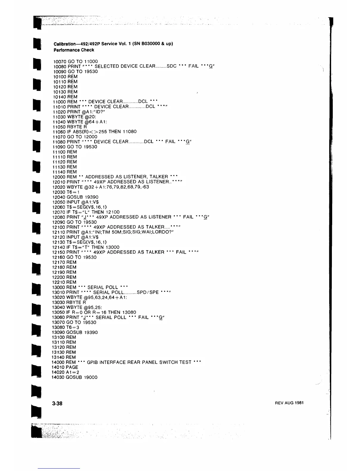 13060 PRINT "J* * * SERIAL POLL * * * FAIL * * *G"