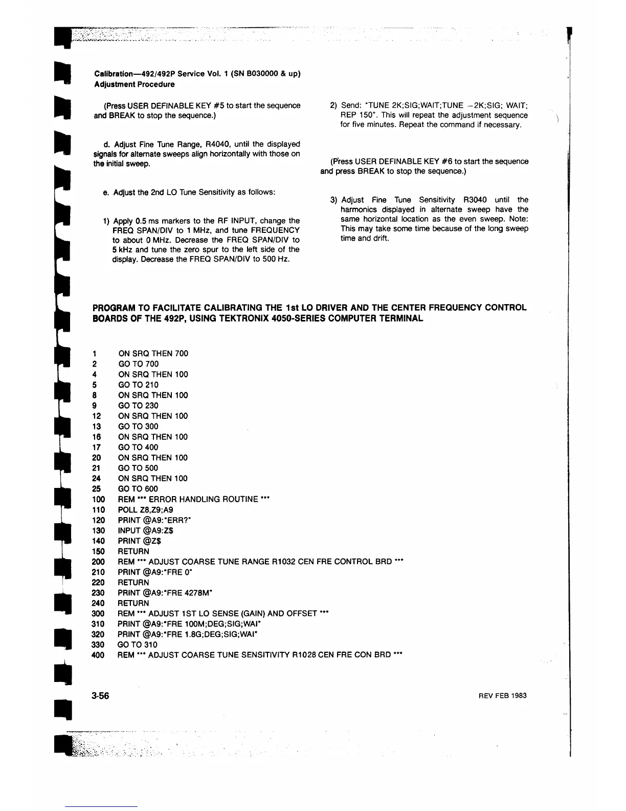 Calibration—492/492P Service Vol. 1 (SN B030000 & up)