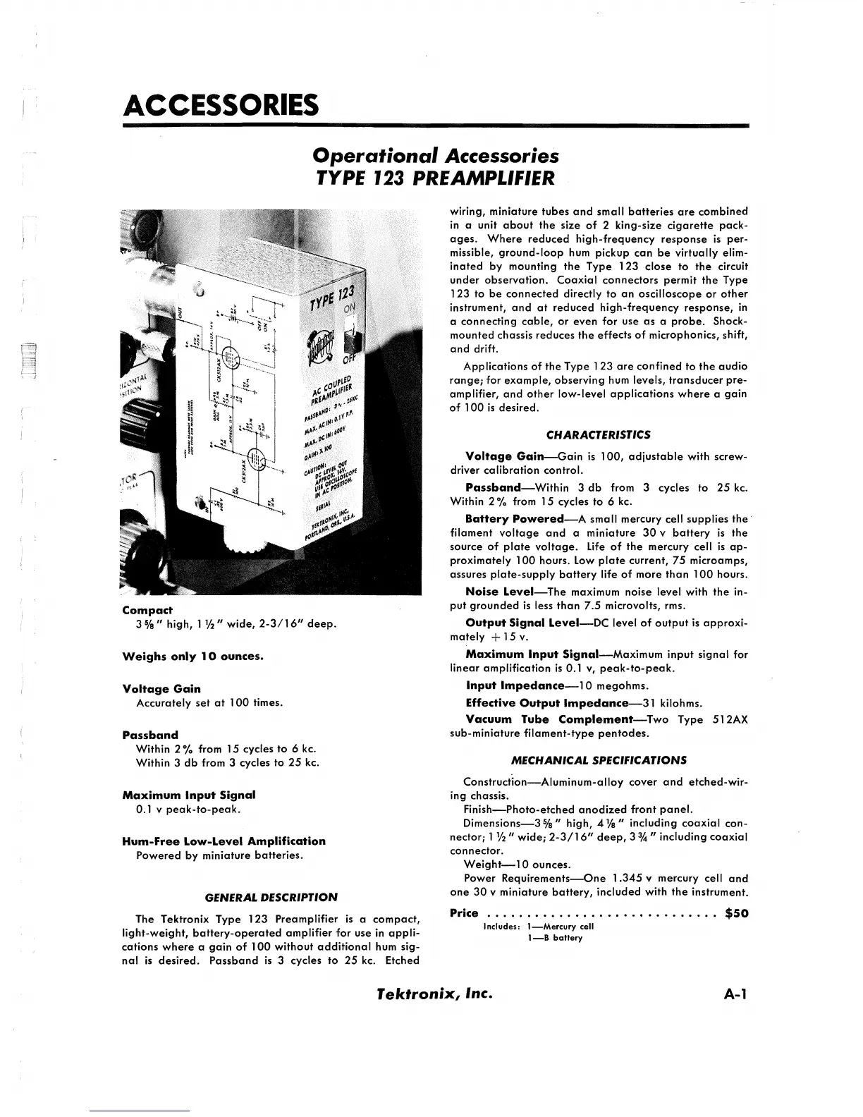 The Tektronix Type 123 Preamplifier is a compact,