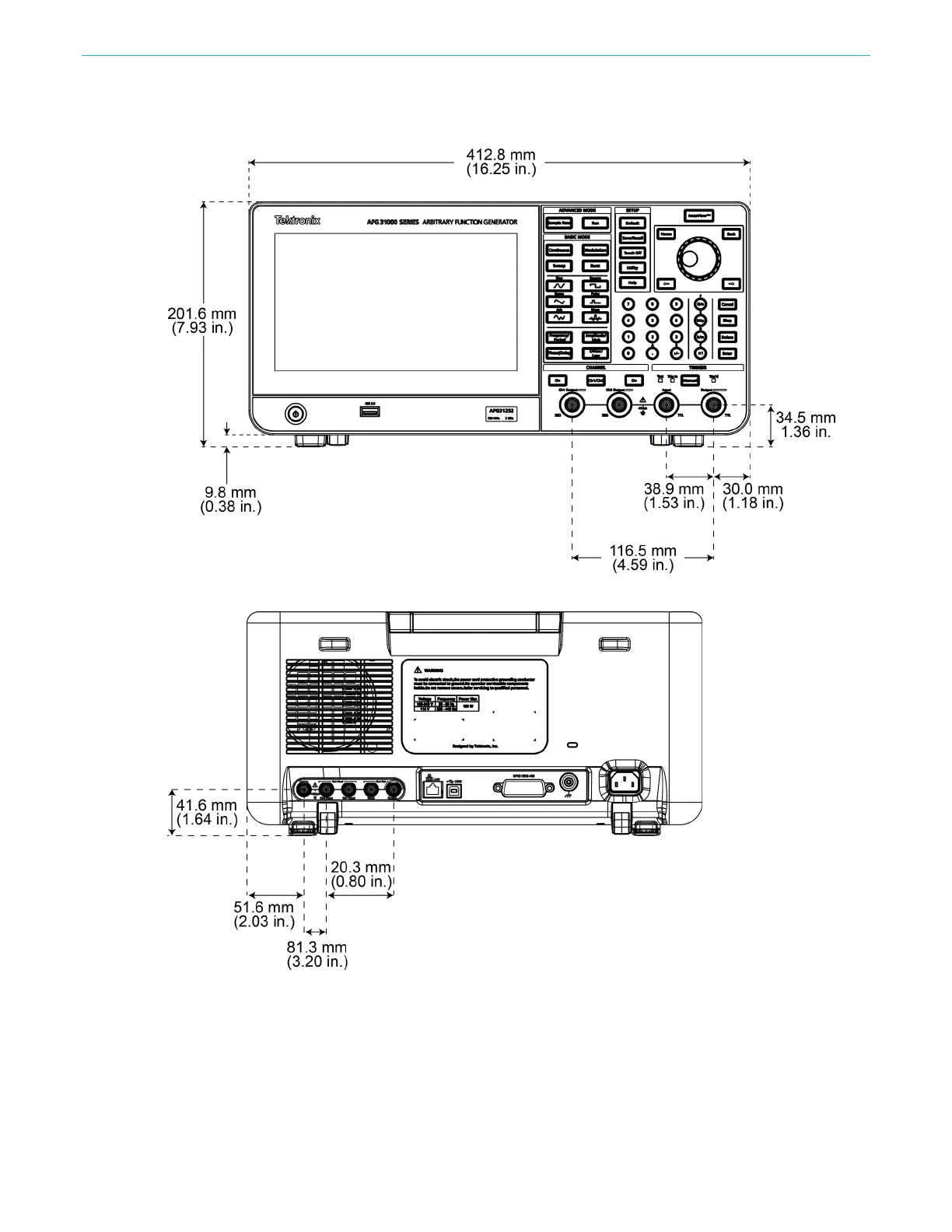 Figure 2: AFG31000 Series dimensions rear view
