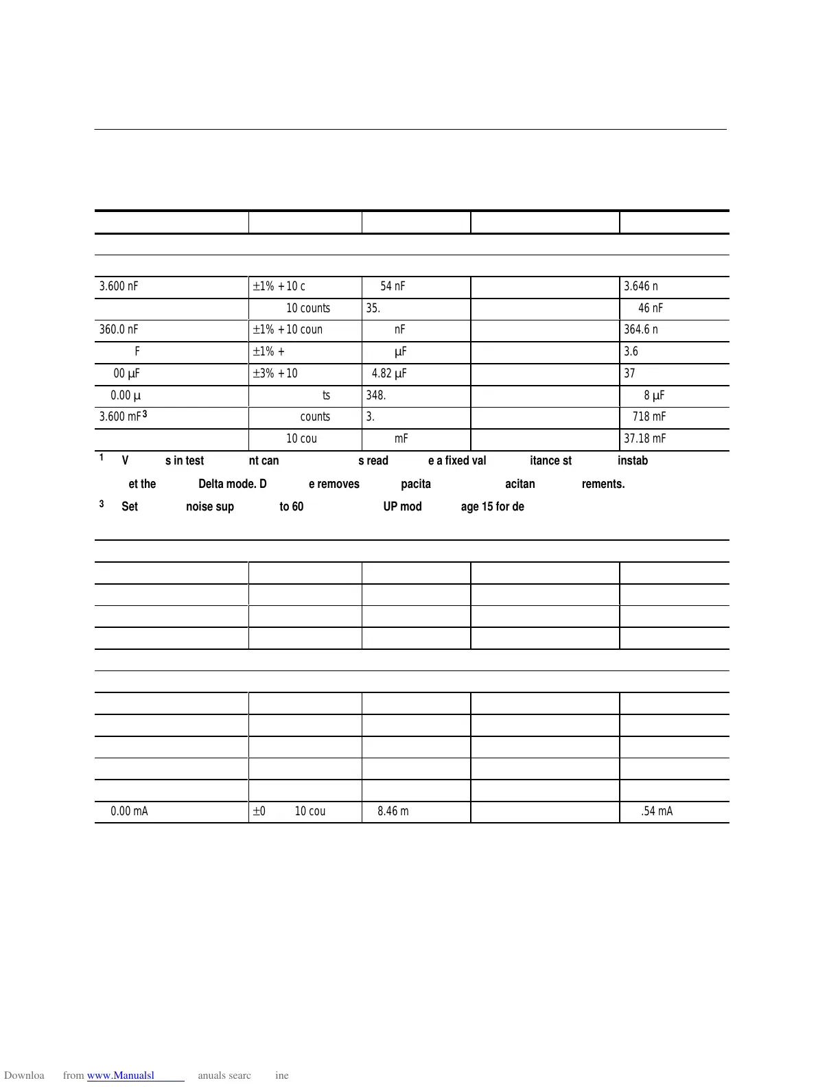 Variations in test equipment can cause erroneous readings. Use a fixed value capacitance standard if instability occurs.