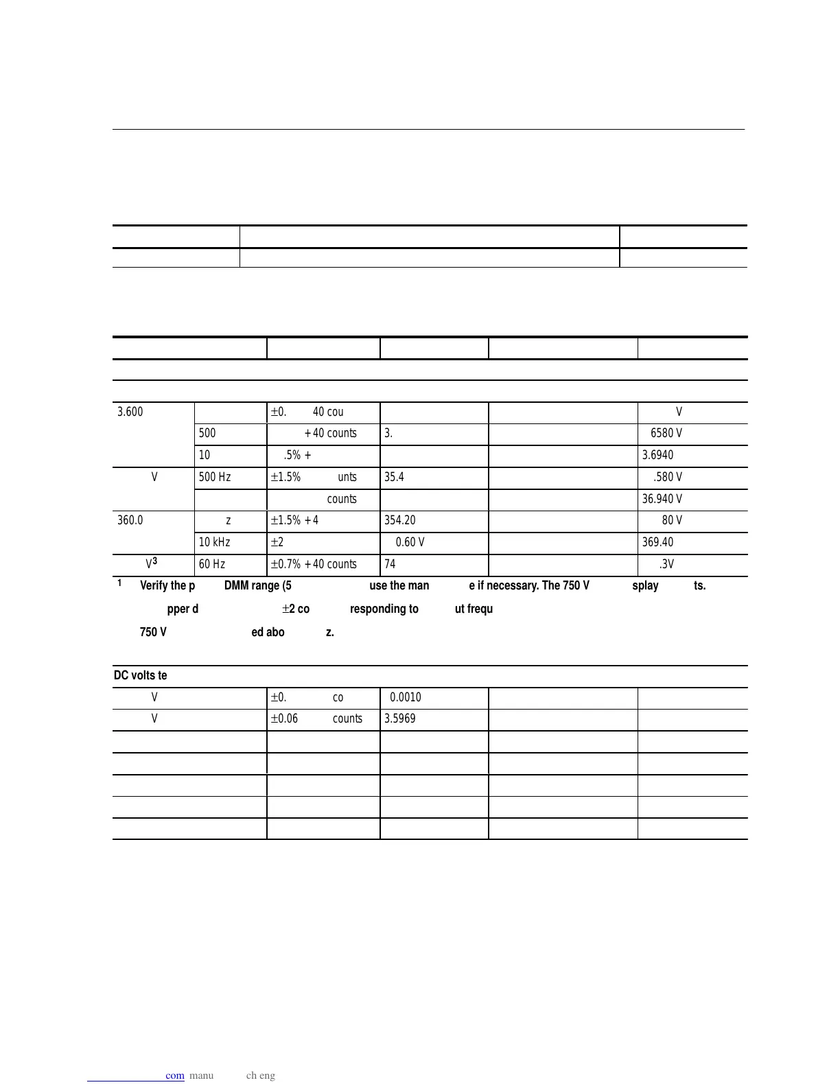 Verify the proper DMM range (5 display digits); use the manual range if necessary. The 750 V range displays 4 digits.