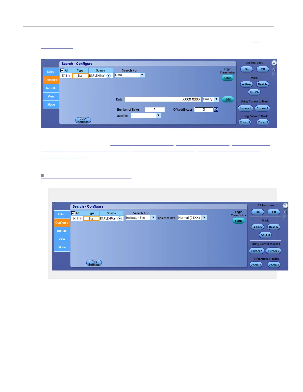 Click the Search For selections Indicator Bits (see page 354), Identifier (see page 355), Cycle Count (see