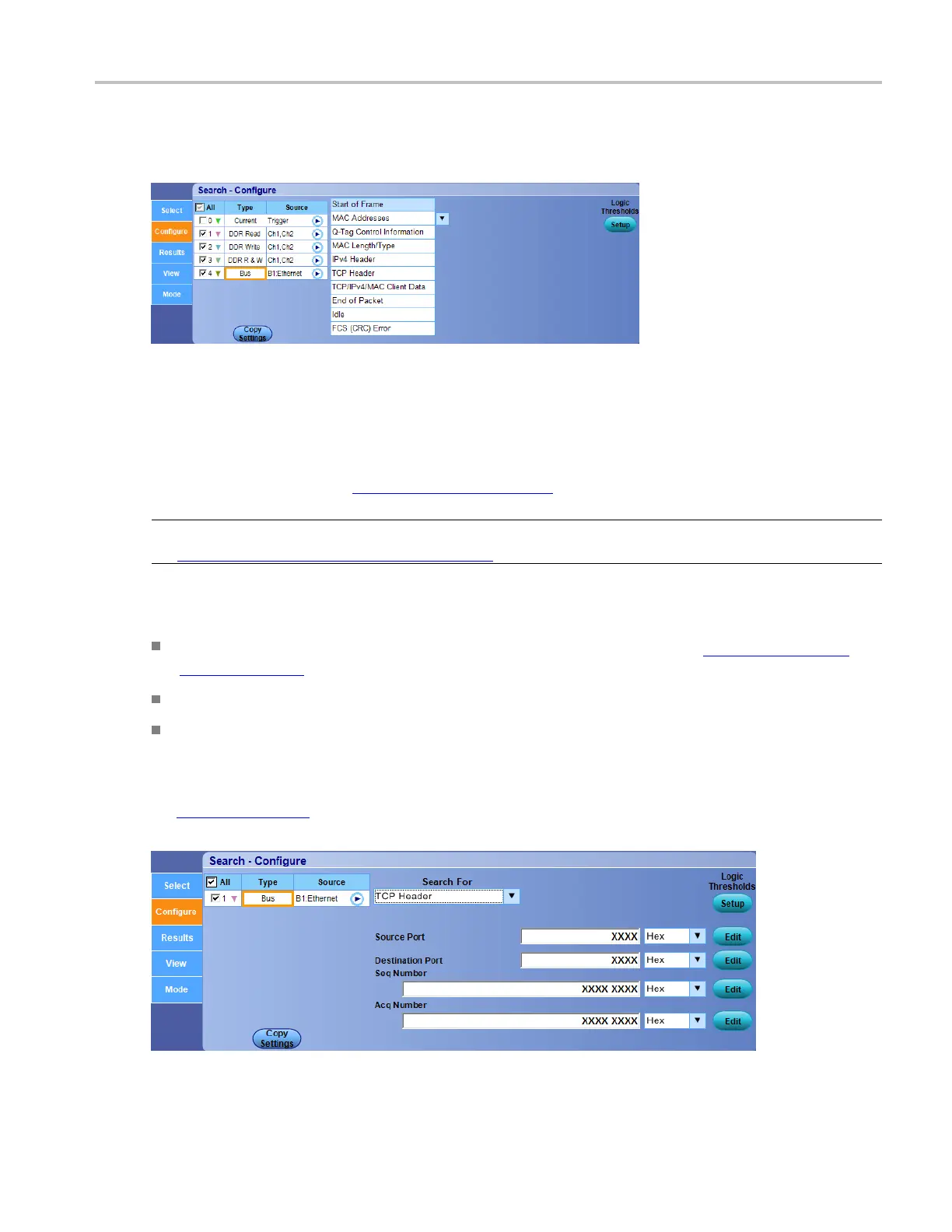 Select the type of bus cycle o r activity to search for from the Search For drop-down list.