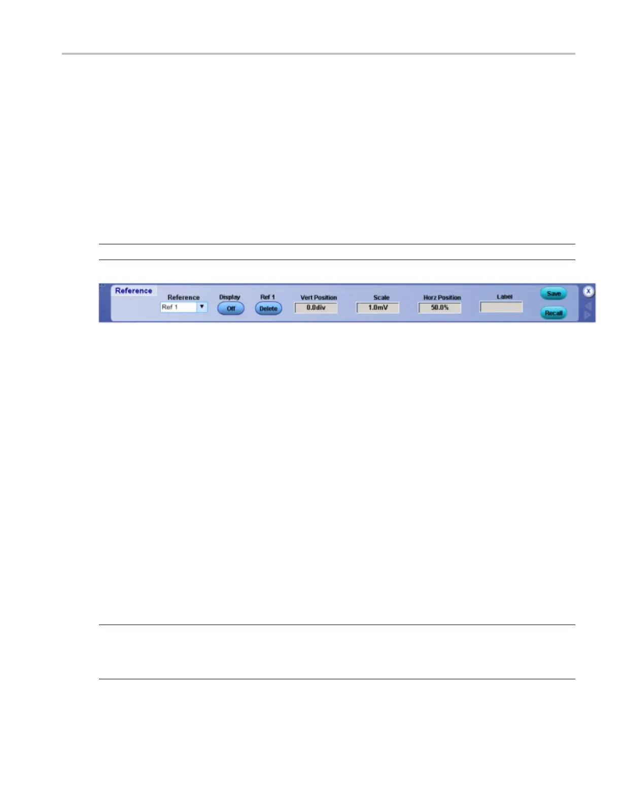 Use the Reference control window to display a nd control reference waveforms. Reference w aveforms are