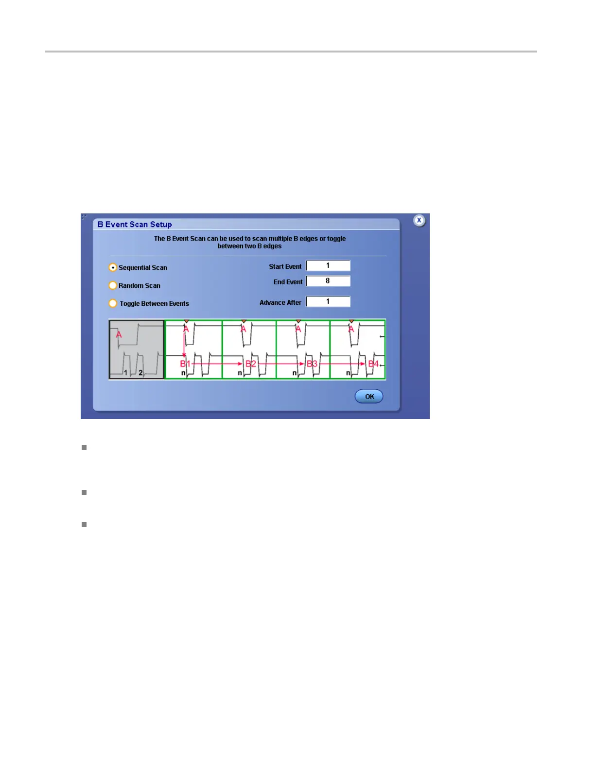 The B -Event Scan initializes the Start Event value to 1 and the End Event value to 8. The Start Event